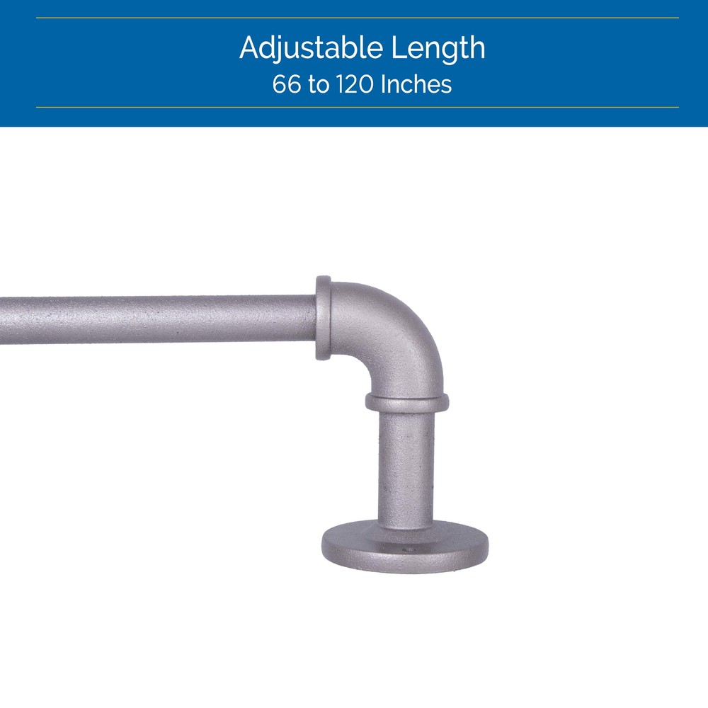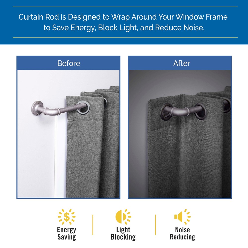 The Sun Zero Bronn 3/4" Light Blocking Wrap Around Window Curtain Rod in polished pewter features an industrial style pipework design that will complement your industrial chic decor. The wrap around brackets block window sidelight, save energy, and reduce outside noise. The telescoping rod adjusts from 66 inches to 120 inches to fit your window and projects 3.75 inches from the wall. Use in larger rooms in your home, like the bedroom or living room, to hang medium to heavyweight curtains. It is ideal for hanging curtains with pockets, grommets, back tabs, and tab tops, but can also be used with clip rings. Pair with Sun Zero Light Filtering, Room Darkening, Blackout, or Premium Blackout curtain panels (sold separately) to maximize light blocking, noise reduction, and energy savings features. Light Blocking Rod Set Includes: one telescoping steel wrap around curtain rod, one center support, screws, drywall anchors, and installation instructions. On Dec 14, 2024 at 00:08:52 PST, seller added the following information: