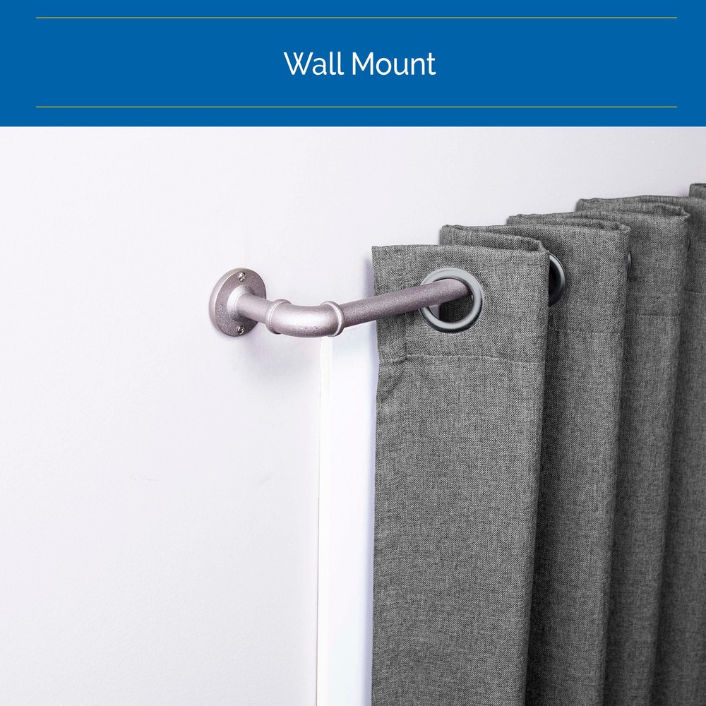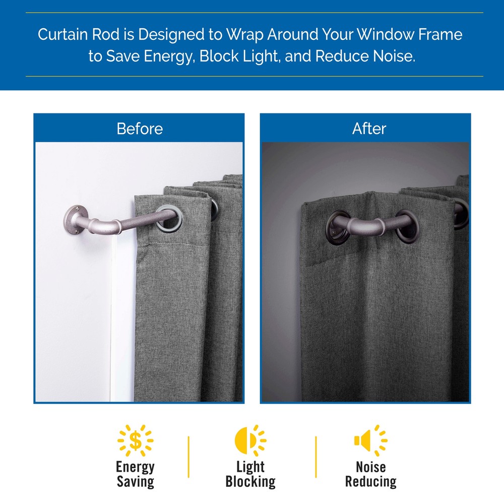 The Sun Zero Bronn Industrial 3/4" Room Darkening Curtain Rod is designed to wrap around your window frame to save energy, block light, and reduce noise.The textured polished pewter finished industrial styled telescoping pipework steel rod is available in two adjustable lengths: 36-66" or 66-120" to fit a variety of window sizes and projects 3.75" from the wall. Use on larger windows in larger rooms, like your bedroom, dining room, or living room to hang light, medium, or heavyweight curtains. It is ideal for hanging curtains with grommets and can be used with clip rings. Pair with Sun Zero curtain panels (sold separately) to maximize energy saving, light blocking, and noise-reducing features.Room Darkening Rod Set Includes: one telescoping steel curtain rod with two mounting brackets, Free Shipping Over $49.99* Details Sun Zero Bronn Industrial 3/4" Room Darkening Curtain Rod Product Description: The Sun Zero Bronn Industrial 3/4" Room Darkening Curtain Rod is designed to wrap around your window frame to save energy, block light, and reduce noise. The textured polished pewter finished industrial styled telescoping pipework steel rod is available in two adjustable lengths36-66" or 66-120" to fit a variety of window sizes and projects 3.75" from the wall. Use on larger windows in larger rooms, like your bedroom, dining room, or living room to hang light, medium, or heavyweight curtains. It is ideal for hanging curtains with grommets and can be used with clip rings. Pair with Sun Zero curtain panels (sold separately) to maximize energy saving, light blocking, and noise-reducing features. Room Darkening Rod Set Includesone telescoping steel curtain rod with two mounting brackets, one center support, screws, drywall anchors, and installation instructions. Sun Zero Bronn Industrial 3/4" Room Darkening Curtain Rod is designed to wrap around your window frame to save energy, block light, and reduce noise The textured telescoping rod is available in two adjustable lengths36-66" or 66-120" to fit your window and projects 3.75" from the wall The 3/4" diameter rod is suited for larger windows in larger rooms of your home such as the living room, dining room, or bedroom Pair with Sun Zero grommet curtain panels (sold separately) to maximize energy saving, light blocking, and noise-reducing features Includesone telescoping curtain rod with two mounting brackets, one center support, screws, drywall anchors, and installation instructions Tips on Buying Curtain Rods