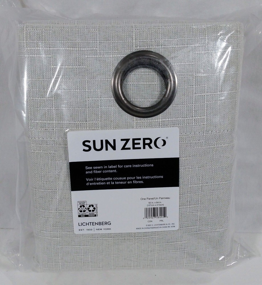 Sun Zero Channing 50"Wx84"L Pearl Grid Texture Draft Shield Fleece Insulated 100% Blackout Grommet Curtain Panel Add subtle distinction to any room of your home with the unique woven grid texture design of Channing Curtain Panel from Sun Zero. Draft Shield technology harnesses the insulating power of fleece to create a multi-level wellness barrier around the window. This draft-blocking barrier keeps warm air inside during the winter, and cool air inside during the summer for optimal indoor temperature regulation. Curtains with Draft Shield also offer noise reduction and light blocking, enhancing your sleep quality, wellness and comfort. The built-in grommet design fits standard curtain rods up to 1.5" in diameter. Sold as individual panels measuring 50" width by 63" length in color blue. Measure carefully before selecting your desired size and quantity. Rod not included. Machine wash cold on gentle cycle. Use non-chlorine bleach when needed. Tumble dry on low heat. Unique woven grid texture adds dimension and style Draft Shield fleece insulation provides optimal temperature regulation Noise reduction creates a calmer environment Total blackout for enhancing sleep quality, wellness, and comfort Built-in metal grommets fit curtain rods up to 1.5" in diameter Includes 1 single curtain panel Color: Pearl White These are Brand New Photos are of actual item for sale. Colors may vary slightly due to photo quality or screen resolution. Free Shipping!!! Listing and template services provided by inkFrog