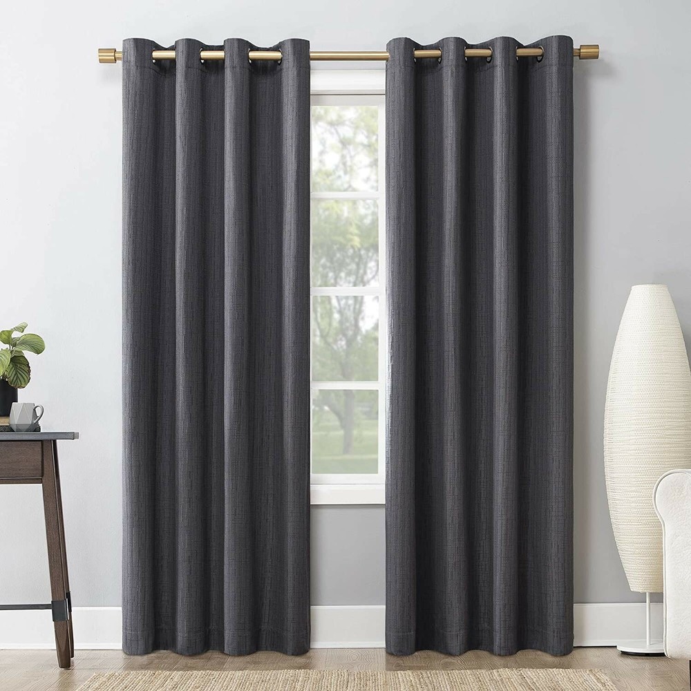 Sun Zero Crosshatch Thermal Extreme Grommet window Curtain Panel, 52"x95" Grey. Condition is "New". Shipped with USPS Priority Mail. Color: Smoke Gray Material Jacquard Size 52" x 95" Top Finish Grommet Brand Sun Zero Item Weight 3.13 Pounds About this item Intricately woven crosshatch jacquard imparts understated elegance Extreme Blackout Thermal Lining blocks out 100% of outside light Energy efficient design reduces energy lost through your windows by up to 40% Thermal properties help keep summer heat and winter chill out of your home Noise reduction by up to 40% helps you get a sounder, more uninterrupted sleep Built-in metal grommets fit curtain rods up to 1.5" in diameter