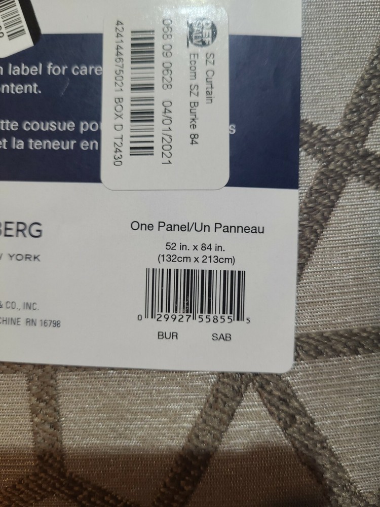 Sun Zero Curtain Panel Lichtenberg. Package contains : one panel measuring 52 in x 84 in (case 10)