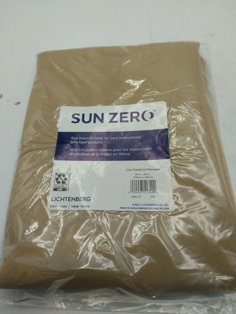 Enhance the look of any room with this Sun Zero taupe curtain panel. Made of 100% polyester, this blackout panel features a solid pattern and measures 40 inches wide by 63 inches long, making it perfect for any window. The panel is designed to block out sunlight and noise, and is ideal for indoor use. This Sun Zero curtain panel is a perfect addition to any home decor. It is easy to install and is sure to add a touch of elegance to your home. The panel is ideal for any room in your home and is perfect for creating a cozy atmosphere. Get ready to enjoy a good night's sleep in complete darkness with this Sun Zero blackout panel.
