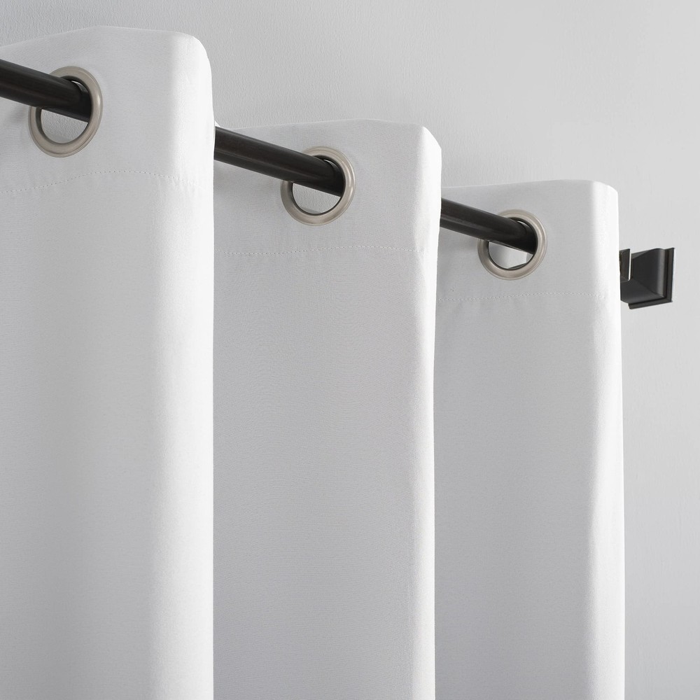 Product Page Sun Zero Cyrus Thermal 100% Blackout Grommet Curtain Single Panel Kitchen Description: Sun Zero Cyrus Thermal 100% Blackout Grommet Curtain Panels provide the ultimate in light blocking technology to keep out even the harshest of light while adding energy efficiency to any room of your home. Sun Zero Total Blackout technology is laboratory tested to block out 100% of light, reduce outside noise by up to 35%, and decrease energy lost through your windows by up to 35%. Comfort is optimized with thermal insulation that helps keep summer heat and winter chill out of your home. Equipped with built-in metal grommets for easy hanging on standard curtain rods up to 1.5" in diameter. Hang in your entertainment room to eliminate screen glare and reduce distracting outside noise, or in your bedroom for enhanced privacy and a sounder, more uninterrupted sleep. Sold as individual panels measuring 40" width by 96" length in color white. Measure carefully before selecting your desired size and quantity. Rod not included. Machine wash cold on gentle cycle. Use non-chlorine bleach when needed. Tumble dry on low heat, using a cool iron as needed. Features: Item Package Dimension: 12L x 10.4W x 1.7H inches Item Package Weight - 1.8 Pounds Item Package Quantity - 1 Product Type - CURTAIN