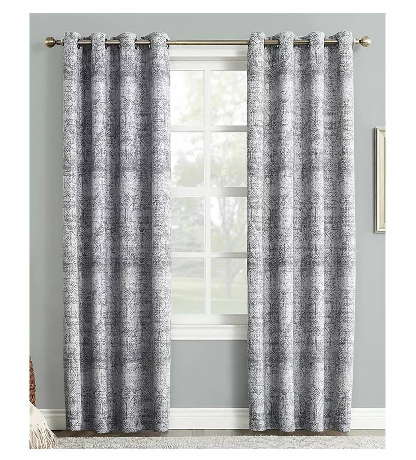 Sun Zero Darren 50" X 95" Distressed Textured Jacquard Blackout Curtain Panel- Indigo T4102871 NOTE: photo displays two panels for a finished look, but this item contains only 1 panel. Each panel is sold individually Add a touch of chic sophistication to your home's decor with the distressed global jacquard and cool contemporary hues of this Darren curtain panel from Sun Zero. Its energy-efficient blackout design makes it a smart choice for any setting. Approx. dimensions: 50" x 95" Fabric: polyester Grommet top header Fits rods up to 1.5" diameter Distressed global jacquard Lined with Sun Zero Blackout technology to block out even the harshest direct sunlight, provide outside noise reduction by up to 30%, and decrease energy lost through your windows by up to 40% Energy efficient thermal curtain that significantly reduces heating and cooling bills NOTE: photo displays two panels for a finished look, but this item contains only 1 panel. Each panel is sold individually Machine washable Imported