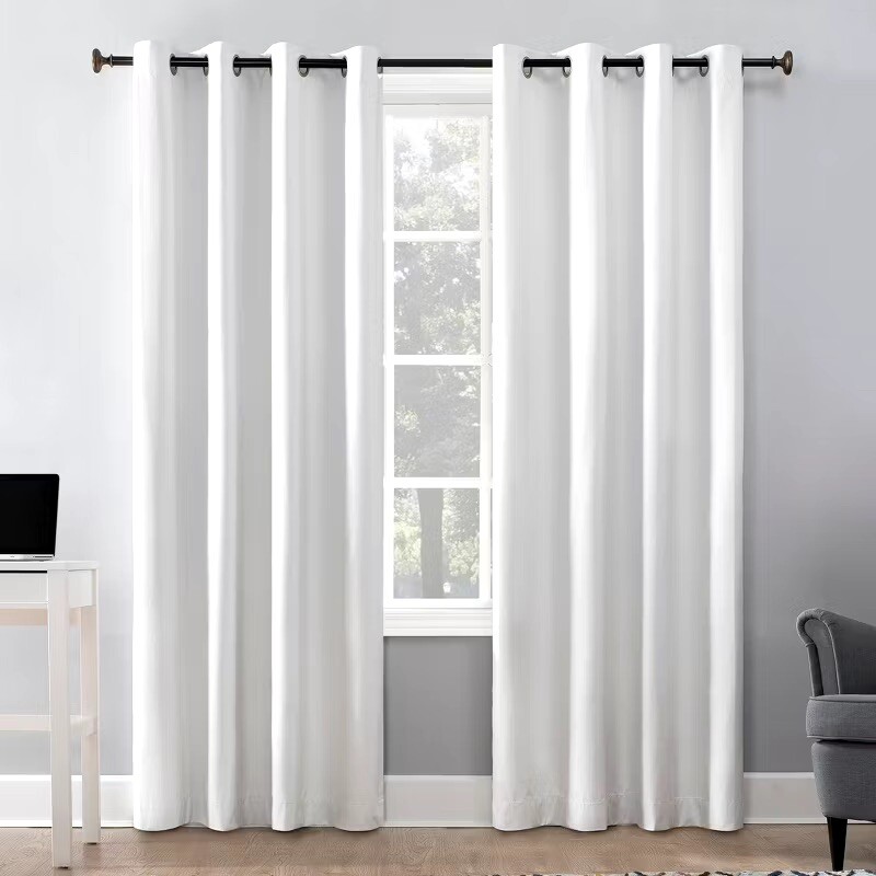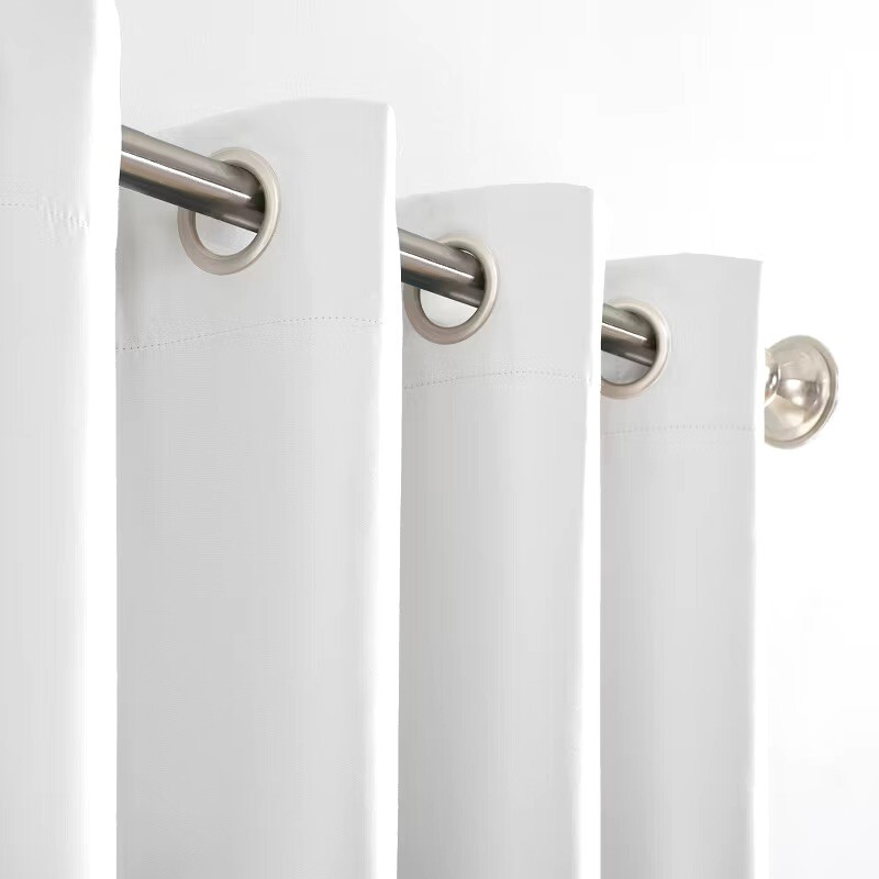 Sun Zero blackout panels (pair) -Color: White -Blocks 100% of outside light -Thermal insulation for cold and heat -Energy efficient design reduces energy lost through your windows by up to 35% -Noise reduction up to 35% -Built-in metal grommets fit curtain rods up to 1.5" in diameter -Each panel is 50x95 for a total width of 100 inches. Rough packaging, NEW product. All these need is a wash/dry to get the wrinkles out and they are good to go! SN11122024-03