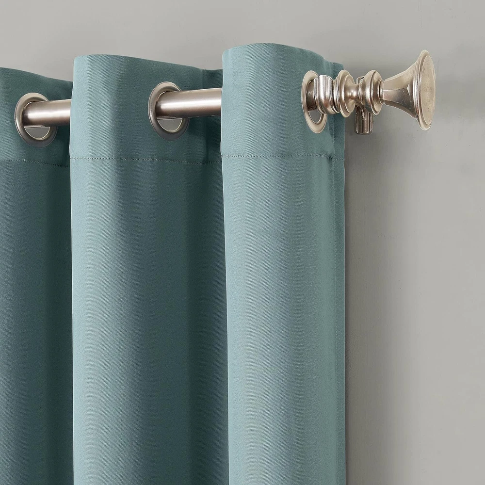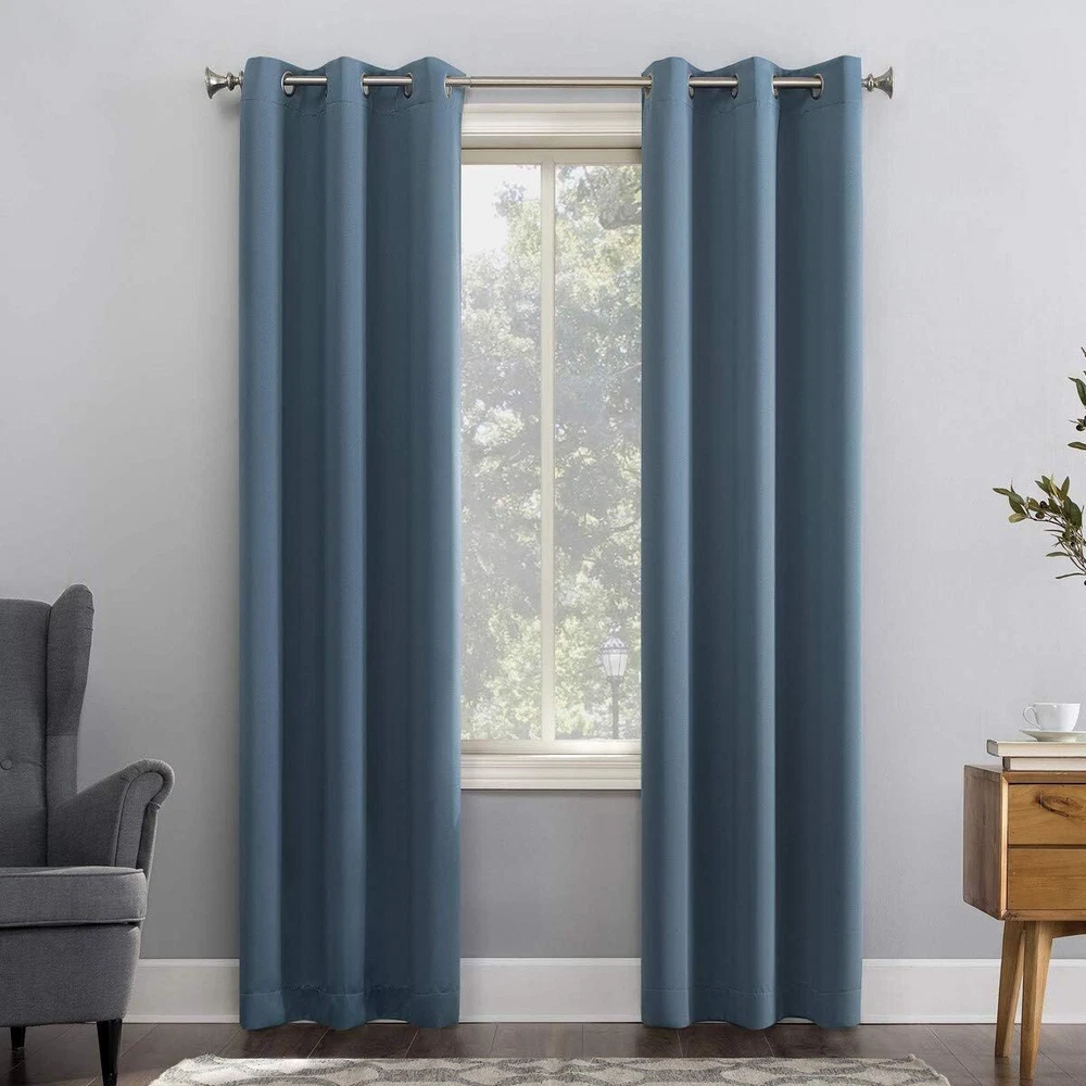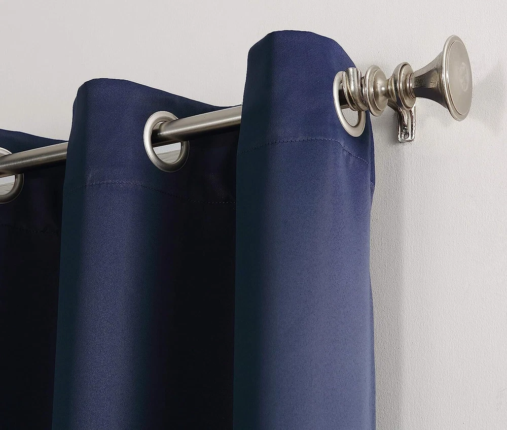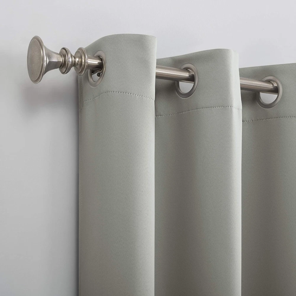 Sun Zero Easton Energy Saving Blackout Grommet Curtain Panel, 40" x 84", Stone 100% Polyester Imported Blackout technology blocks out most unwanted light while enhancing privacy Energy efficient design reduces energy lost through your windows by up to 40% Thermal properties help keep summer heat and winter chill out of your home Noise Reduces outside noise by up to 30%. They will help you get a sounder, better, more uninterrupted sleep. Built-in metal grommets fit curtain rods up to 1.5" in diameter Each panel sold separately. (Image features 2 panels) Panels sold individually. Measure carefully prior to purchase. (Image features 2 panels) Performance varies by product color; darker the base color the more light blocked Note: Depending on the brightness on the computer, color may look slightly different