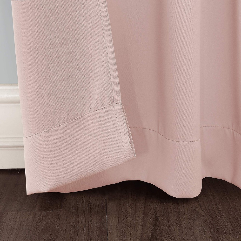 Sun Zero Easton Energy Saving Blackout Rod Pocket Curtain Panel, 40" x 84", Blush Pink Description Sun Zero Easton Rod Pocket Blackout Curtain is perfect for any room in your home. The woven solid design with an easy to hang rod pocket-top offers a classic style that fits in with any room decor while blocking light and noise for better sleep; help keep your home cooler in the summer and warmer in the winter. Blackout or opaque panels virtually block all light. This panel gives complete privacy. Sold individually. Hang on a rod up to 1.5 inch in diameter. Polyester. Washable. Imported. Features: 100% Polyester Blackout technology blocks out most unwanted light while enhancing privacy Energy efficient design reduces energy lost through your windows by up to 40% Thermal properties help keep summer heat and winter chill out of your home Noise reduction up to 30% helps you get a sounder, more uninterrupted sleep Built-in rod pocket fits curtain rods up to 1.5" in diameter Each panel sold separately Product Details: Brand: Sun Zero Color: Blush Pink Material: Polyester Product Dimensions: 84"L x 40"W Opacity: Blackout Curtain Hanging Method: Rod Pocket Recommended Uses For Product: Indoor Specific Uses For Product: Privacy Top Style: Rod Pocket Seasons: Winter, Summer Color: Blush Pink Pattern: Solid Theme: Space Style Name: Curtain Opacity: Blackout Curtain Form: Drapes Room Type: Home Office Closure Type: Rod pocket Fits Rod Size: 1.5 Inches Additional Features: Blackout Global Trade Identification Number: 46 Included Components: Single Curtain Panel UPC: 029927517446 Manufacturer: Sun Zero Number of Items: 1 Model Name: Easton Brand Name: Sun Zero Material Type: Polyester Lining Description: Polyester Product Care Instructions: Machine wash cold on gentle cycle, Tumble dry on low heat, Use non-chlorine bleach when needed, Cool iron as needed Fabric Type: 100% Polyester Size: 40"W x 84"L (Pack of 1) Package Weight: 0.48 Kilograms Item Dimensions L x W: 84"L x 40"W Unit Count: 1.0 Count Shipping Free fast shipping Return Policy All items qualify for returns within 30 days of receipt.