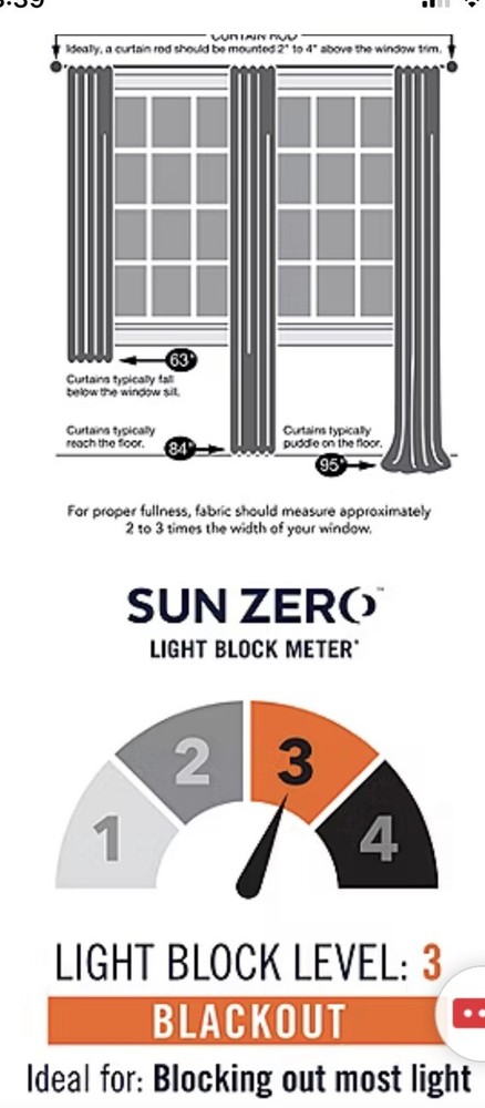 Sun Zero Easton Energy Saving Blackout Rod Pocket Curtain Panel 40" x 95. Condition is New. Shipped with USPS Ground Advantage....