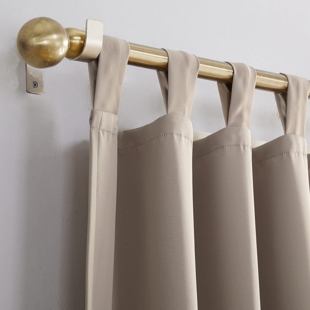 Sun Zero Easton Energy Saving Blackout Tab Top Curtain Panel, 40" x 84", Stone Description Sun Zero Easton Tab Top Blackout Curtain is perfect for any room in your home. The woven solid design with an easy to hang tap top offers a classic style that fits in with any room decor while blocking light and noise for better sleep; help keep your home cooler in the summer and warmer in the winter. Blackout or opaque panels virtually block all light. This panel gives complete privacy. Sold individually. Hang on a rod up to 1.5" in diameter. Polyester. Washable. Imported. Features: 100% Polyester Blackout technology blocks out most unwanted light while enhancing privacy Energy efficient design reduces energy lost through your windows by up to 40% Thermal properties help keep summer heat and winter chill out of your home Noise reduction up to 30% helps you get a sounder, more uninterrupted sleep Tab top design allows for easy hanging on curtain rods up to 1.5" in diameter.Each panel sold separately Product Details: Brand: Sun Zero Color: Stone Material: Polyester Product Dimensions: 84"L x 40"W Opacity: Blackout Brand: Sun Zero Color: Stone Material: Polyester Product Dimensions: 84"L x 40"W Opacity: Blackout Special Feature: Blackout Room Type: Home Office Style: Curtain Pattern: Solid Theme: Contemporary Top Style: Tab Top Size: 40"W x 84"L (Pack of 1) Included Components: Single Curtain Panel Recommended Uses For Product: Indoor Specific Uses For Product: Room Darkening, Privacy Seasons: Winter, Summer Hanging Method: Tab Top Item Weight: 15.87 ounces Number of Items: 1 Lining Description: Polyester Package Weight: 0.46 Kilograms Fabric Type: 100% Polyester Unit Count: 1.0 Count Compatible with Rod Size: 1.5 Inches Global Trade Identification Number: 41 Model Name: Easton UPC: 029927519341 Manufacturer: Sun Zero Item Weight: 15.9 ounces Country of Origin: China Item model number: 51934 Antibacterial treatment: Thermal Assembly required: No Number of pieces: 1 Batteries required: No Shipping Free fast shipping Return Policy All items qualify for returns within 30 days of receipt.