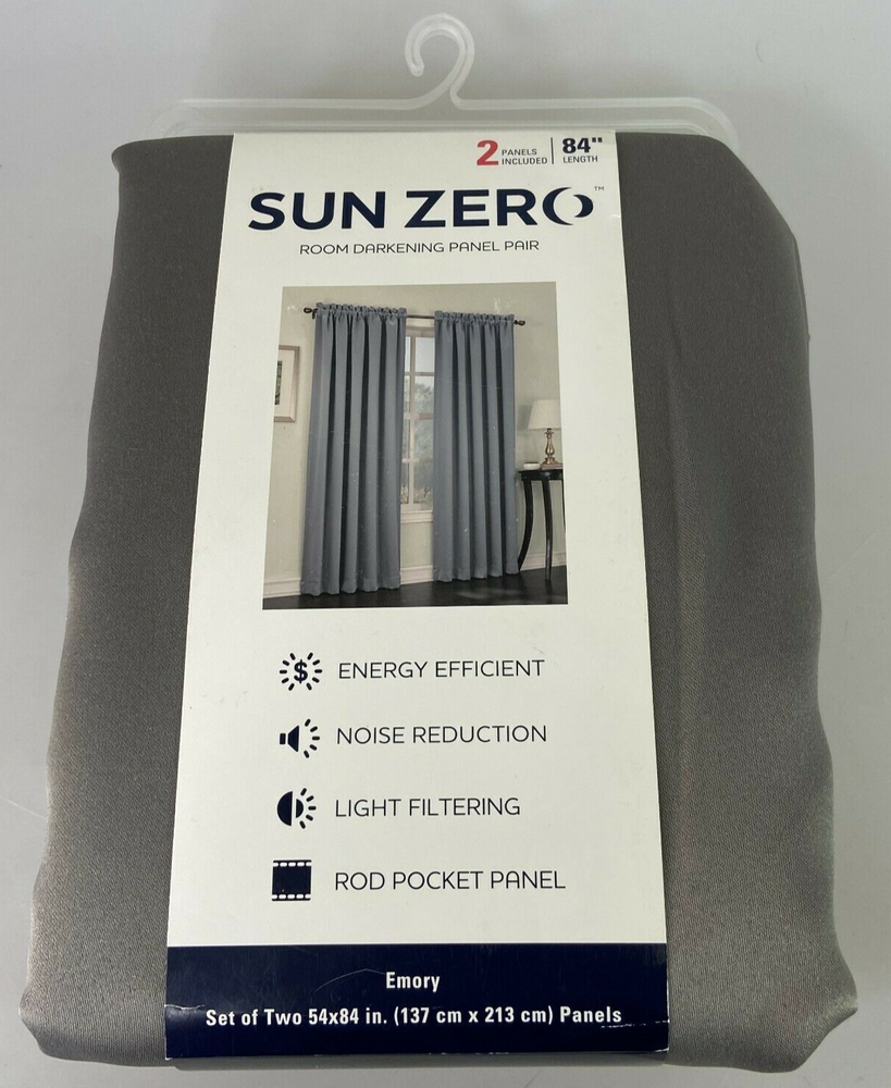 Sun Zero Emory Gray 2-Pack Room-Darkening Rod-Pocket Curtain Panels, 54"x84"...