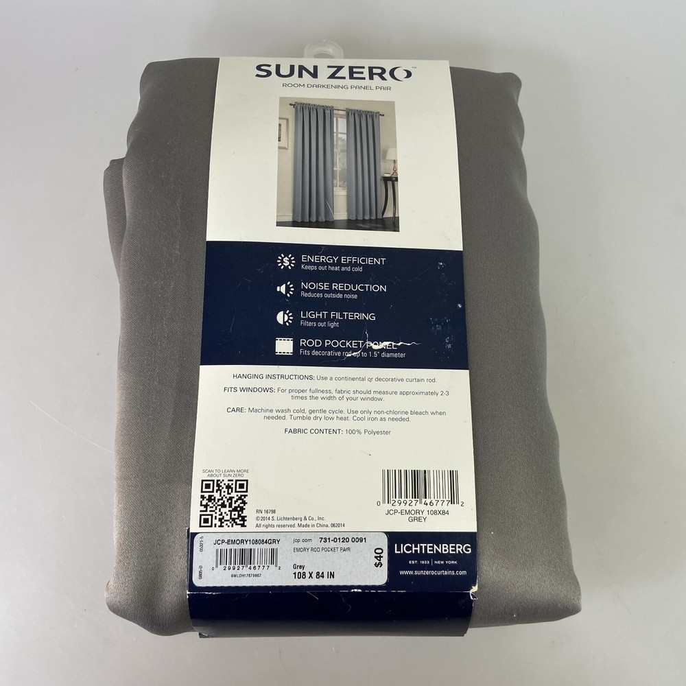 Sun Zero Emory Gray 2-Pack Room-Darkening Rod-Pocket Curtain Panels, 54"x84"