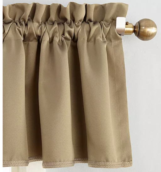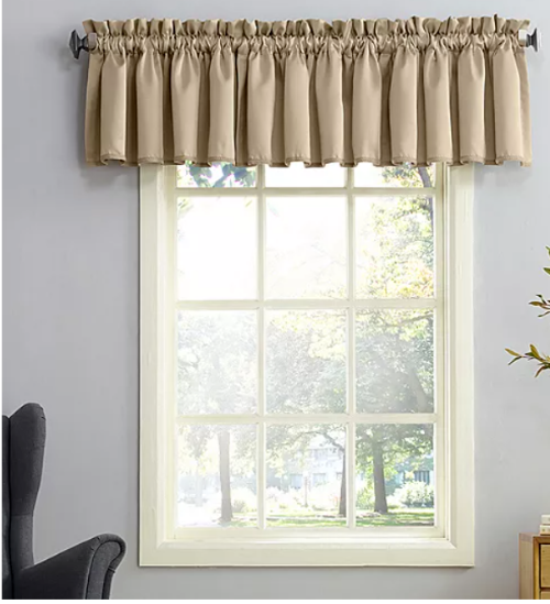 Description The Sun Zero Emory Curtain Valance delicately adorns the top of any window in your home. Pair with Sun Zero curtains or hang alone for maximum light exposure. Equipped with a rod pocket that fits curtain rods up to 1.5" in diameter. Machine wash cold on gentle cycle. Use non-chlorine bleach when needed. Tumble dry on low heat, using a cool iron as needed. Sold as individual valances measuring 54" width by 18" length. Coordinating curtain panels are sold separately. Measure carefully before selecting your desired size and quantity. Rod not included. Included: 1 Valance(s) Features: Energy Saving, Noise Reduction Top Construction: Rod Pocket Top Opening: 2 1/2 In Rod Pocket Use: Indoor Fiber Content: 100 Polyester Lining: Unlined Light Filtration: Light-Filtering Care: Machine Wash Curtain Length: 18 Inch Curtain Width: 54 Inch Decor Styles: Traditional Back of Curtain Color: Same As Front of Curtain Curtains Type: Valances Silhouette: Tailored Country of Origin: Imported