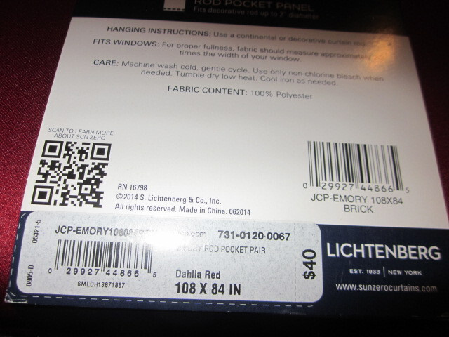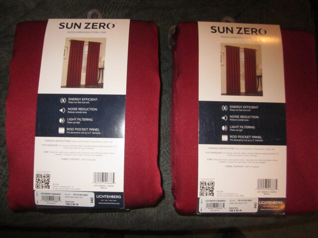 Sun Zero Emory Set of two, 54" x 84" Red Pocket Curtain Panels Brick Red. New condition, never been used.
