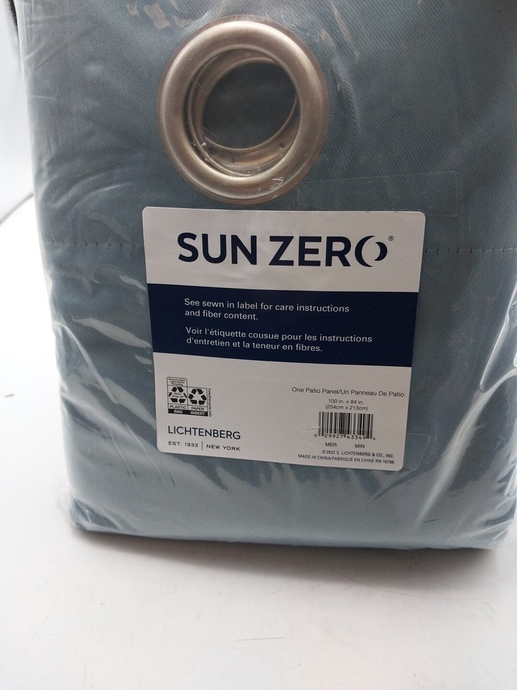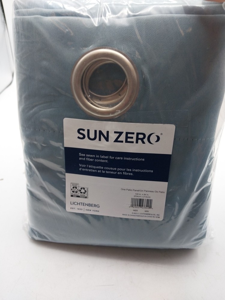 Enhance your home decor with this beautiful Sun Zero Evan Blackout Grommet Curtain Panel in Mineral Blue. Measuring 100 inches in width and 84 inches in length, this panel is perfect for your patio door or any indoor use. The panel is made of high-quality polyester material with a classic style and solid pattern that matches any room. The blackout feature of this panel ensures complete privacy and blocks out unwanted light. The grommet curtain heading makes it easy to install and maintain. This item is a must-have for anyone who wants to add a touch of elegance to their home.