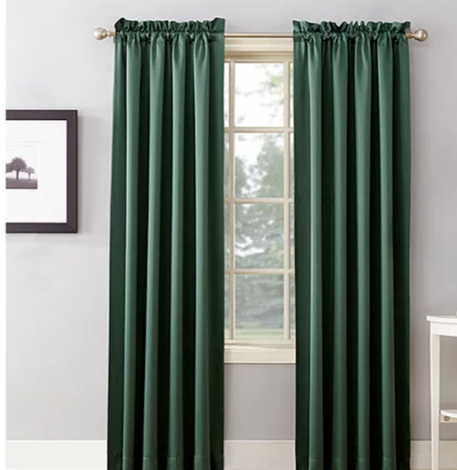 Sun Zero Evan Curtain Panel is perfect for any room in your home. The woven solid design with an easy to hang rod pocket-top offers a classic style that fits in with any room decor while blocking light and noise for better sleep; help keep your home cooler in the summer and warmer in the winter. Blackout or opaque panels virtually block all light. This panel gives complete privacy. Sold individually. Hang on a rod up to 1.5 inch in diameter. Polyester. Washable. Imported. Sold as individual panels. Measure carefully before selecting your desired size and quantity. Rod not included. Machine wash cold on gentle cycle. Use non-chlorine bleach when needed. Tumble dry on low heat, using a cool iron as needed.