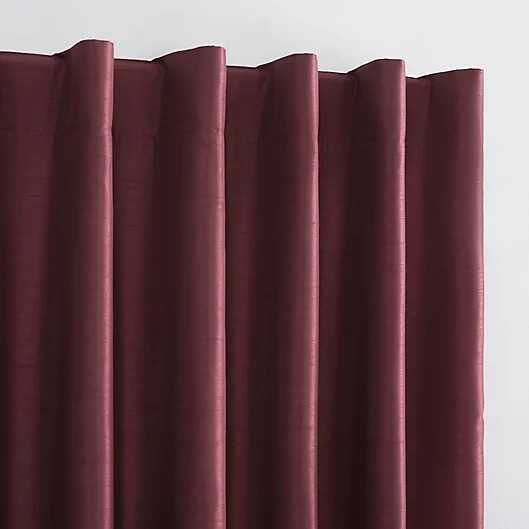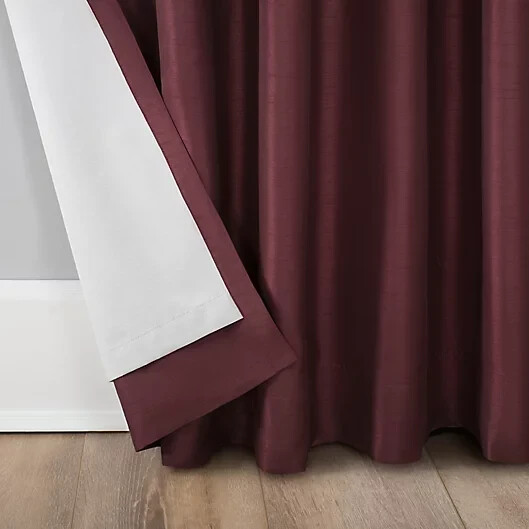 about the product The Evelina Window Panel from Sun Zero makes for a stylish, modern accent in any room. Beautifully designed in a solid tone and woven texture, this polyester blackout panel features a thermal insulation layer for added privacy and noise reduction. Modern, solid design features elegant dupioni faux silk sheen with raw slub texture Thermal insulation layer increases privacy and helps reduce outside noise 100% blackout 100% polyester Machine wash Panel hangs on a rod pocket or back tabs Panels are sold individually and measure 50" W Fits a rod up to 1.5" diameter Imported