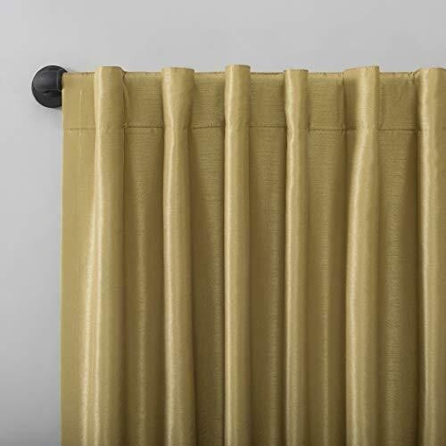 New Sun Zero Evelina Faux Dupioni Silk Thermal Extreme 100% Blackout Back Tab One Panel Featuring an elegant dupioni faux silk fabric with a raw slub texture, Greyson Faux Dupioni Silk Extreme 100% Blackout Back Tab Curtains provide the ultimate in light blocking technology to keep out even the harshest of light while adding opulent radiance to any room of your home. Sun Zero Extreme Blackout Thermal Lining is laboratory tested to block out 100% of light, reduce outside noise by up to 30%, and decrease energy lost through your windows by up to 40%. Comfort is optimized with thermal properties that help keep summer heat and winter chill out of your home. Built-in hidden back tabs allow for easy slide-through installation on curtain rods up to 1.5" in diameter. Hang in your entertainment room to eliminate screen glare and reduce distracting outside noise, or in your bedroom for enhanced privacy and a sounder, more uninterrupted sleep. Sold as individual panels measuring 50" width by 95" length in color gold. Measure carefully before selecting your desired size and quantity. Rod not included. Machine wash cold on gentle cycle. Use non-chlorine bleach when needed. Tumble dry on low heat, using a cool iron as needed. Elegant faux dupioni silk fabric with a raw slub texture imparts opulent radiance Extreme Blackout Thermal Lining blocks out 100% of outside light Energy Efficient design reduces energy lost through your windows by up to 40% Thermal properties help keep summer heat and winter chill out of your home Noise reduction by up to 30% helps you get a sounder, more uninterrupted sleep Back tabs fit curtain rods up to 1.5" in diameter All Sales are final
