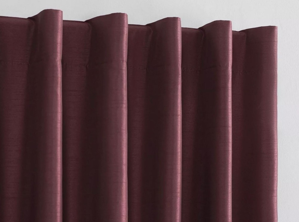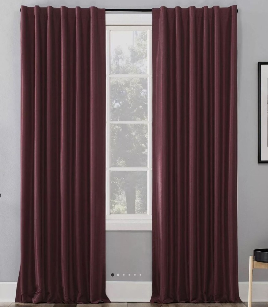 Single Panel 1 Sun Zero Evelina 100% Blackout Faux Dupioni Silk Back Tab Window Curtain, Bordeaux, 50"x95"