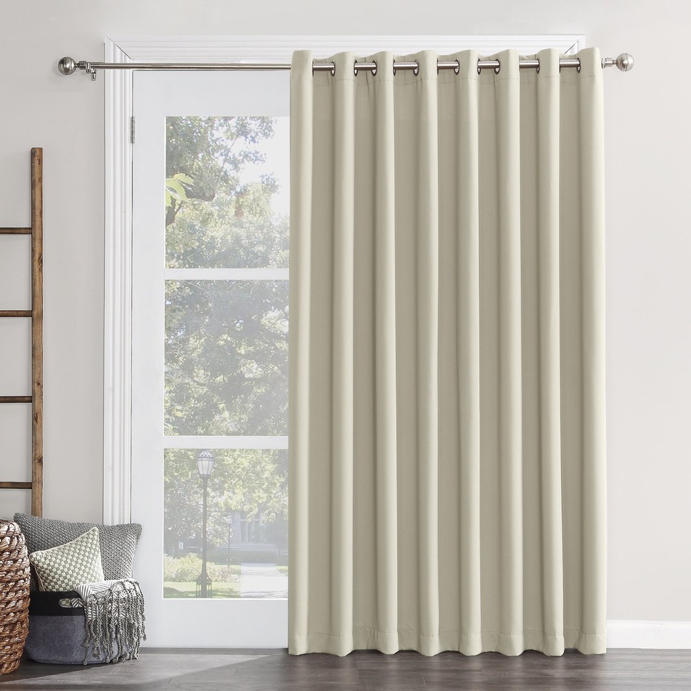 Sun Zero Conrad Sliding Patio Door Curtain Panel in silver gray is perfect for large windows and patio doors. The woven solid design with an easy to hang grommet-top offers a classic style that fits in with any room decor while blocking light and noise for better sleep; help keep your home cooler in the summer and warmer in the winter. This panel gives complete privacy. Easily open and close with the attached wand. Sold individually. Detachable pull wand ideal for sliding glass doors and large windows Energy efficient design reduces energy lost through your windows by up to 25 percent Thermal properties help keep summer heat and winter chill out of your home Noise reduction up to 25 percent helps you get a sounder, more uninterrupted sleep Built-in metal grommets fit curtain rods up to 1.5" in diameter Includes one individual patio curtain