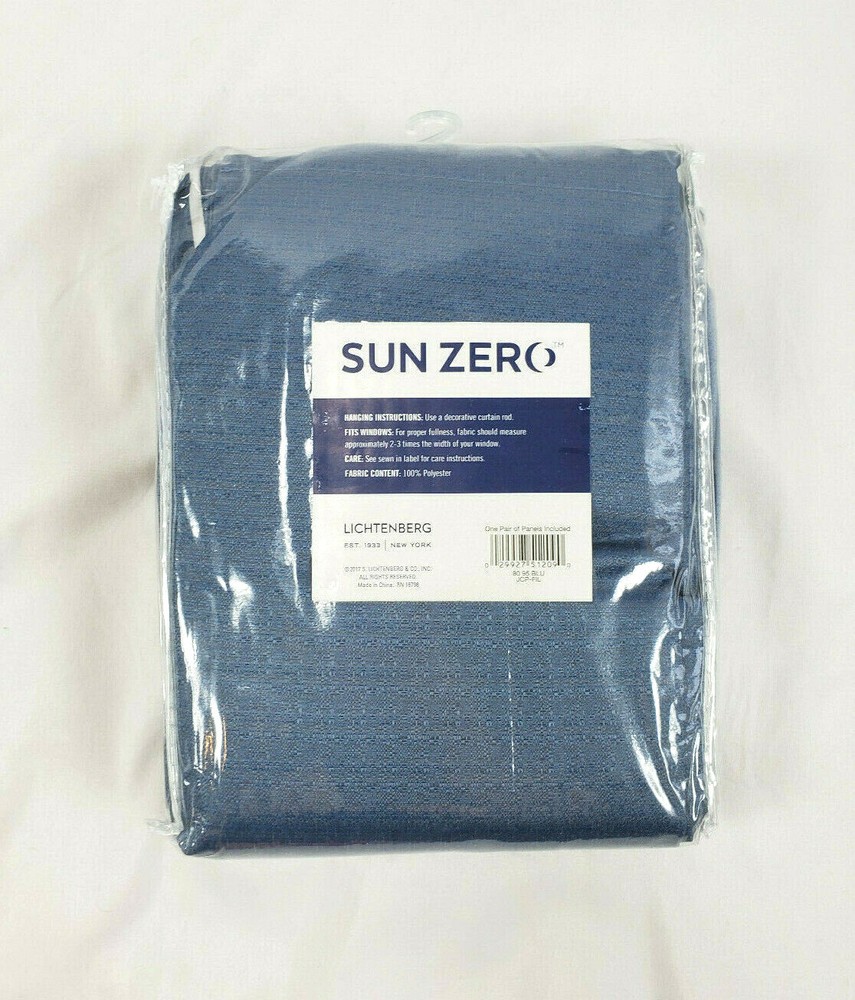 Sun Zero Filmore Blue Thermal Rod-Pocket 2 Curtain Panels. Thermal curtains help keep the cold out and the heat in. Machine washable. Material: 100% Polyester Dimensions: 80" in. W x 95" in. L j&m-4