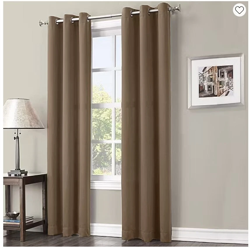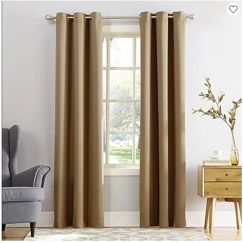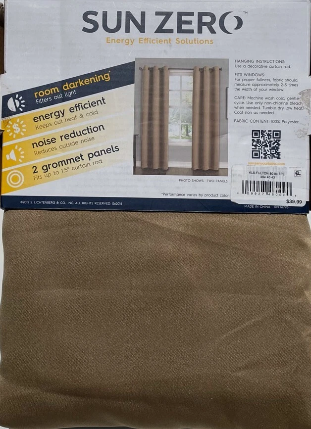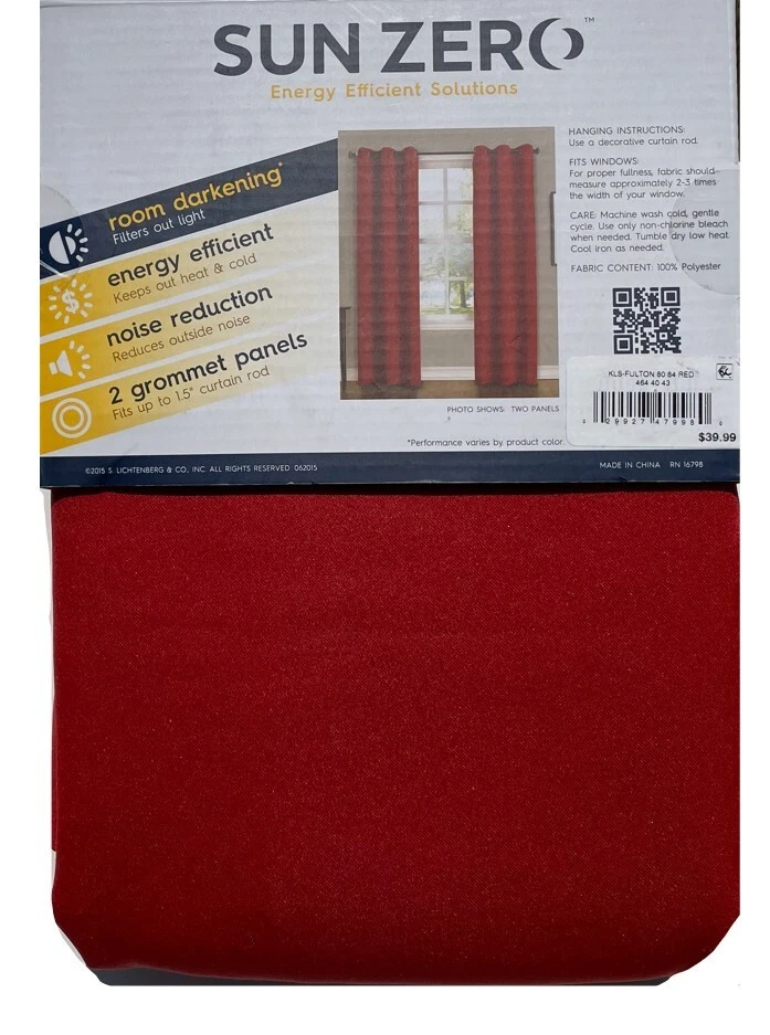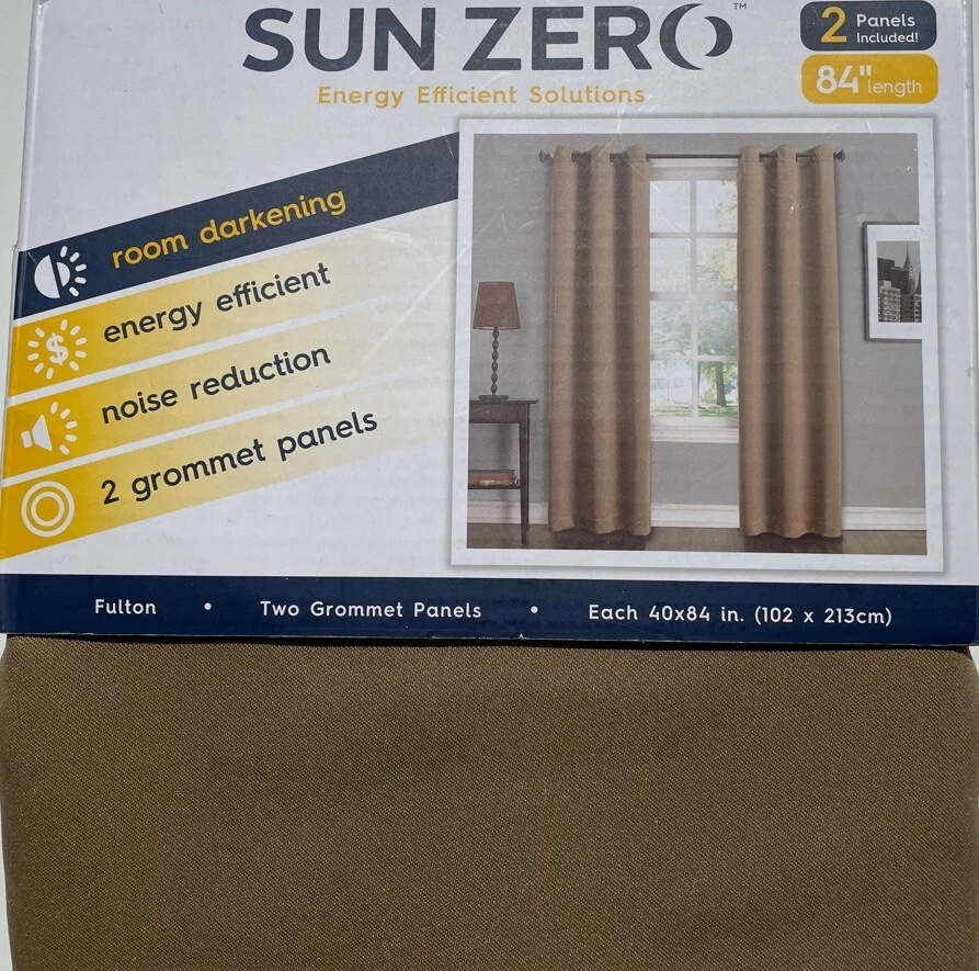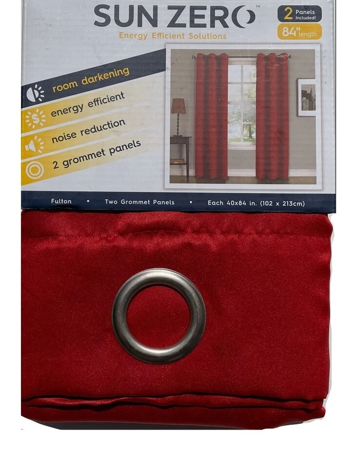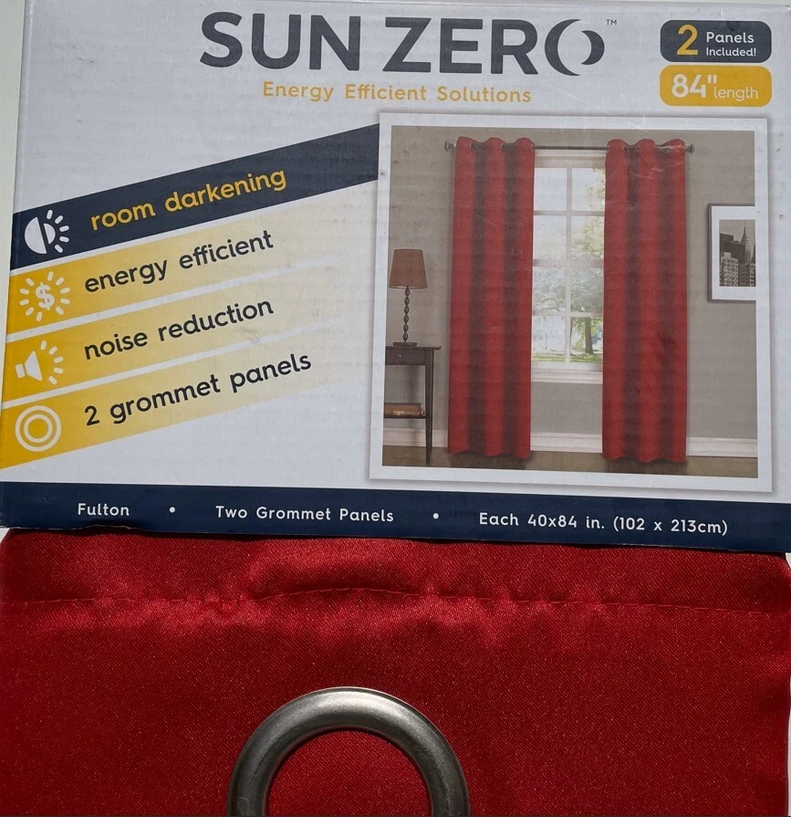 Elevate your home's ambiance with the Sun Zero Fulton Grommet Top Blackout Single Curtain Panel. Designed for versatility, it fits seamlessly into any room, offering both elegance and functionality. The solid black color ensures a sophisticated look, while the modern 40-inch width by 84-inch length dimensions provide ample coverage for a full room blackout effect. Crafted from durable polyester, these panels promise easy care with machine washable convenience. The grommet top makes installation a breeze, and the room darkening, energy-efficient, and noise-reducing features create an ideal environment for rest and relaxation. Whether it's for privacy or light control, these panels are a tasteful addition to your living space. Room darkening panels Energy efficient: keeps out heat & cold Noise reduction: reduces outside noise TWO grommet top panels Fits up top 1.5" curtain rod Measures 40" Wide x 84" Long each panel Machine wash cold, gentle cycle