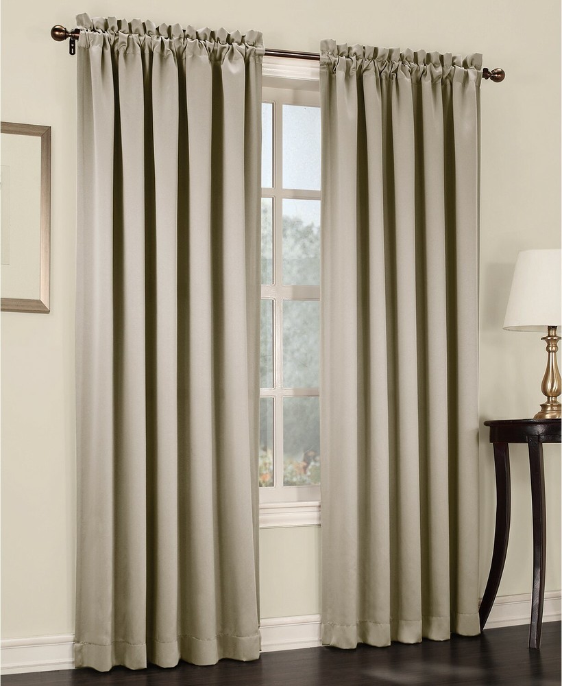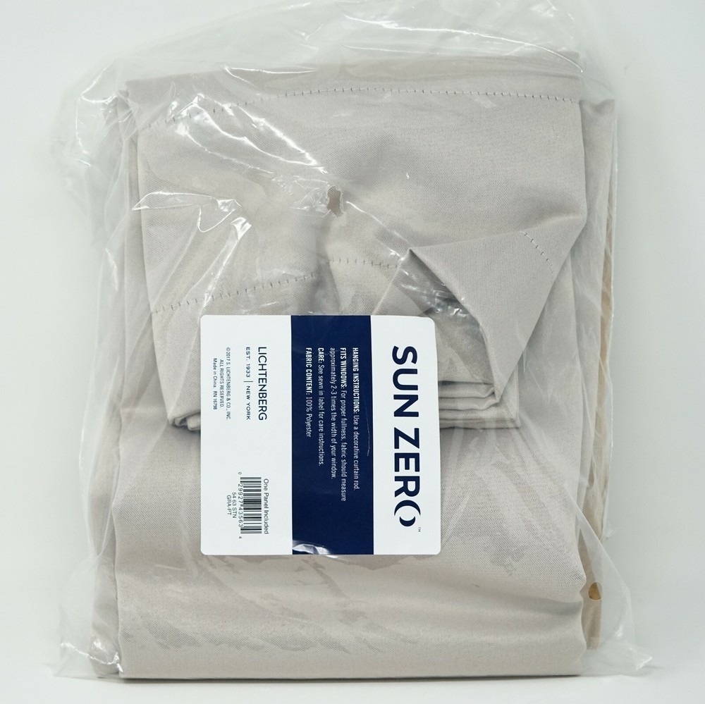 Brand New - Refolded Color: Stone Size: 54" x 63" Create an elegant yet casual look with the Sun Zero Grant solid room darkening pole top panel from Lichtenberg. Featuring a rod pocket header for easy hanging, the thick texture of each panel will block out unwanted sunlight. 1.5" rod pocket Each panel is sold separately and measures 54"W x 63"L Polyester Machine washable Imported