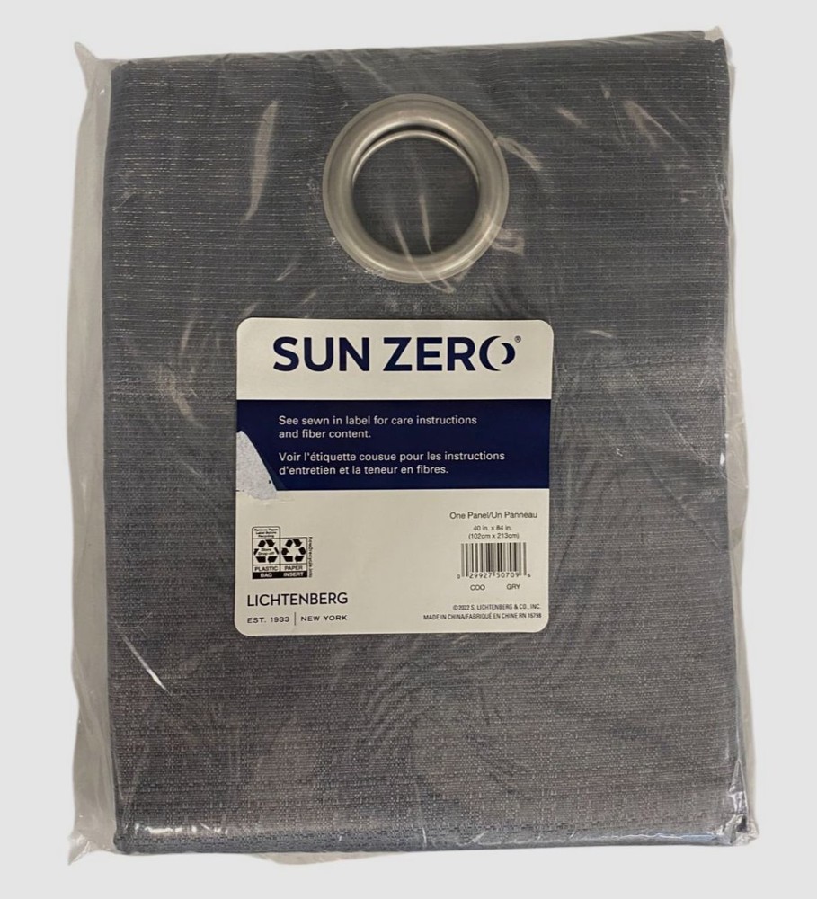 Sun Zero Gray Cooper Grommet Top One Curtain Panel Only Size 40" x 84" Description Dimensions: 40" x 84" Includes: 1 curtain panel Noise reduction helps you get a sounder, more uninterrupted sleep Silver metal grommet top fits a standard curtain rod for easy hanging Polyester Machine wash cold on gentle cycle Imported About Us We sell only 100% authentic clothing from new with tags to gently used. We have a 100% authentic or money back guarantee on every item we sell. Items are listed daily so make sure to put us on your favorite! We have been in business for over 10 years selling tens of thousands of designer items. We strive to meet your designer needs at a quality price! Payment Shipping Returns Payment accepted via paypal, credit/debit card. Shipping is usually within 24 hours of purchase (M-F). Super fast service. Tracked delivery. 100% satisfaction guaranteed. Please review our eBay return policy for more details.