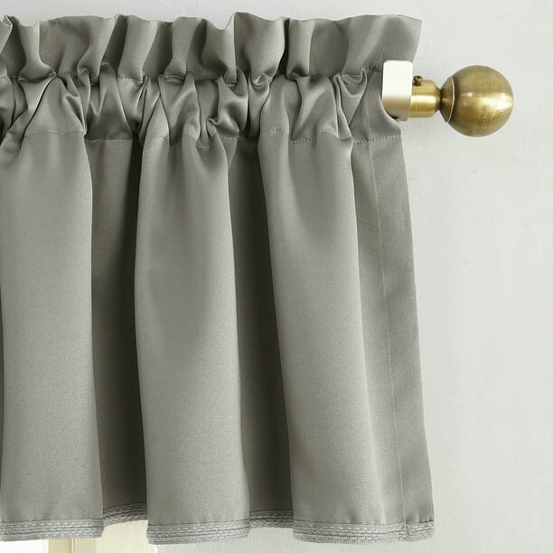 Elevate your home decor with the Sun Zero Gray Kylee Rod Pocket Room Darkening Window Valance. Sized at 54"x18", this modern valance brings a touch of sophistication to any room with its sleek gray color and solid pattern. The polyester material ensures durability and easy maintenance, making it a practical choice for both busy households and elegant abodes alike. Designed for convenience, the valance features a rod pocket heading for easy mounting on your wall, providing a seamless look. Its light filtering transparency offers just the right amount of comfort, ensuring your privacy while allowing natural light to permeate. Whether for a living room, bedroom, or any other space, this valance is a versatile addition to your home.