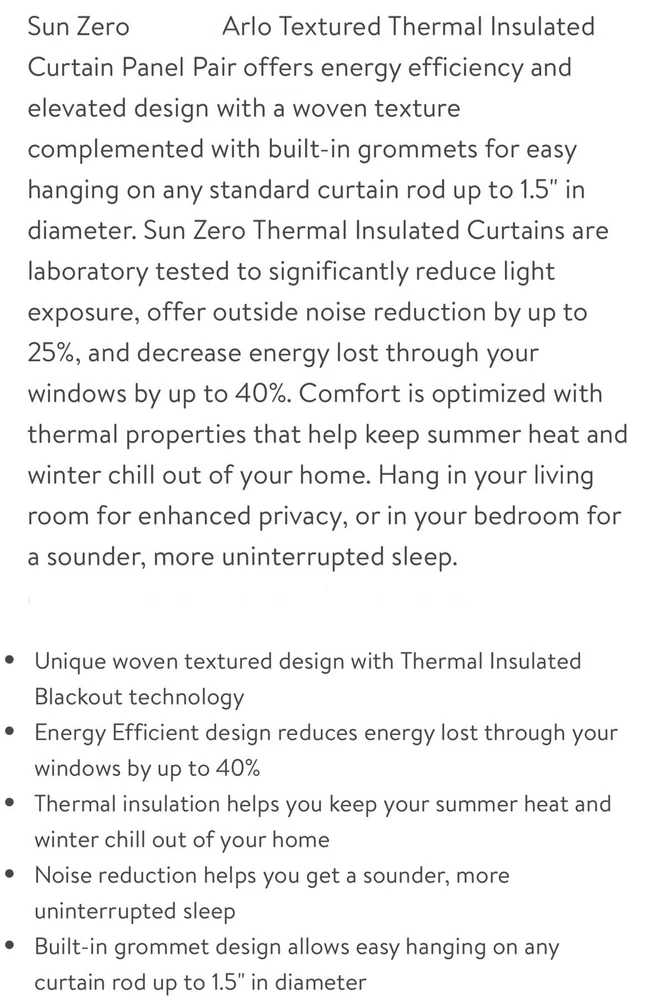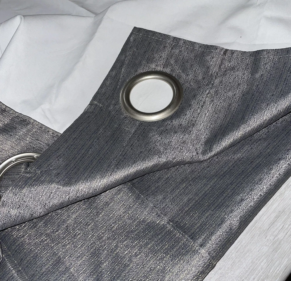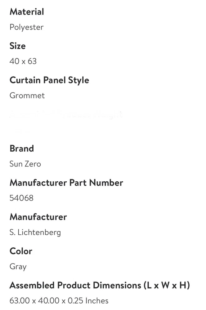 Please see all pictures. From a smoke-free home. If you have any questions, please ask :) included: one new without tags curtain panel Add a touch of elegance to your windows with this beautiful gray Sun Zero grommet curtain panel. Made from high-quality polyester material, this panel measures 63" in length and 40" in width, making it a perfect fit for most windows. The grommet design makes it easy to hang and adds a modern touch to any room. This panel is perfect for those who want to add an element of sophistication to their home decor. Its neutral gray color and elegant design make it a versatile choice for any room in the house. Whether you're looking to update your living room, bedroom or home office, this panel will help create a stylish and inviting atmosphere.
