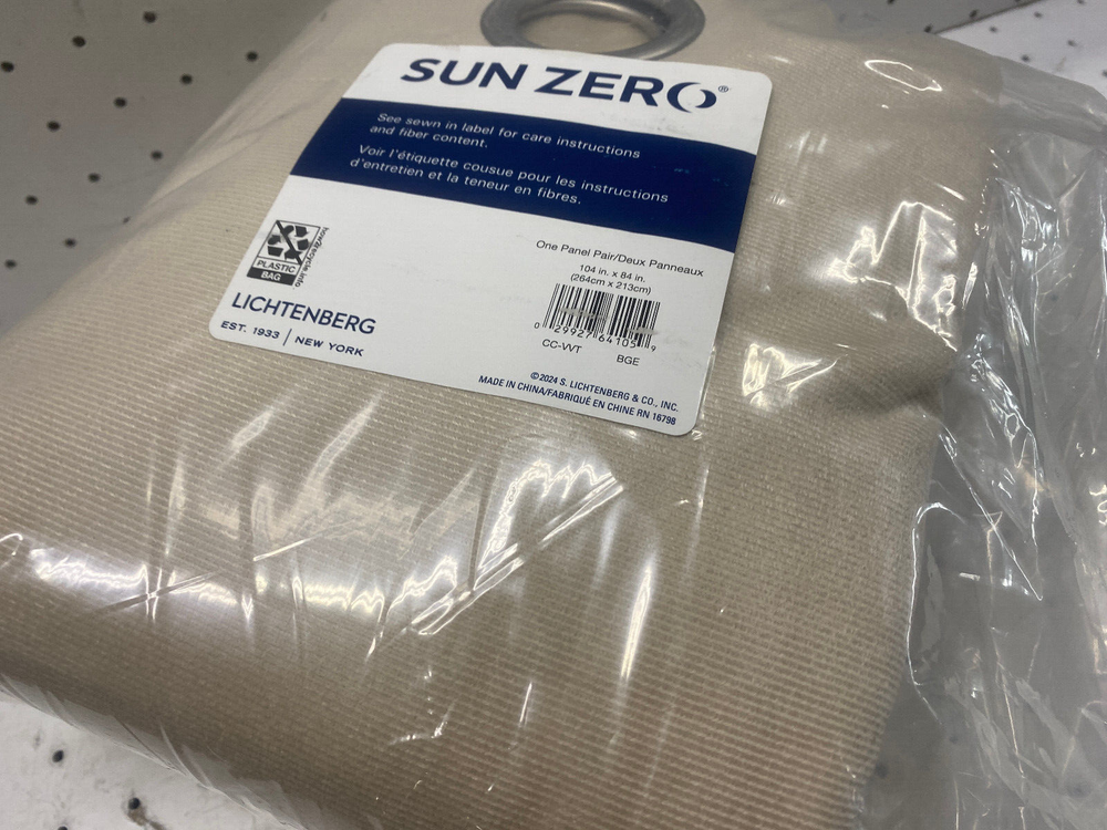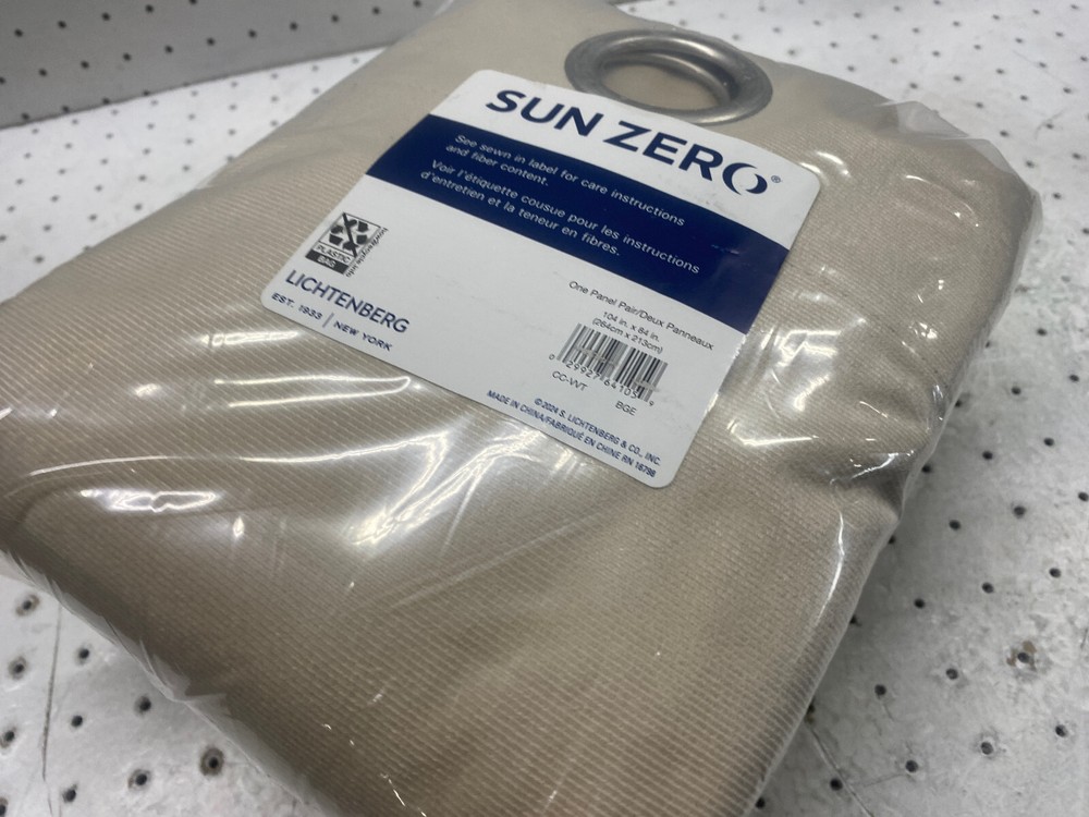Sun Zero Grommet Top Single Curtain Panel is a modern style window treatment made of polyester material. The panel total is 104 inches wide and 84 inches long, and comes in a pair. The beige color and solid pattern make it suitable for any room. The blackout feature makes it perfect for indoor use. The grommet heading ensures easy installation. Fast Shipping! - We ship within 1 business day of receiving payment. Packages are shipped via USPS, UPS and FedEx, depending on the destination and weight of the package. Free thirty day returns are included on most items that we sell...Check item description above to confirm. Should you have any issues or questions regarding any item, please contact us first before leaving NEUTRAL or NEGATIVE FEEDBACK. Thank you for your consideration.