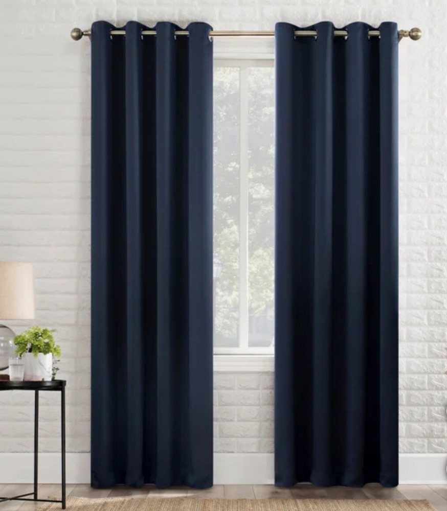 Features: Theater Grade Blackout- Blocks 100% of Outside Light Energy Efficient- Reduces Energy Lost Through Your Windows Thermal Insulation, Noise Reduction Built-in Metal Grommets Fits Curtain Rods Up to 1.5" In Diameter PANEL FABRICATION Each panel is lined with a tightly-woven 340 grams-per-square-meter Extreme Blackout lining that blocks out 100% of even the harshest direct sunlight, to completely eliminate screen glare or help you get a better night's sleep. GROMMET TOP TREATMENT Grommet top design allows for simple slide-through installation on curtain rods up to 1 ½ inches in diameter. GROMMET TOP TREATMENT Grommet top design allows for simple slide-through installation on curtain rods up to 1 ½ inches in diameter.