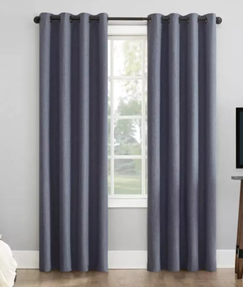Sun Zero Grommet Top Single Curtain Panel 100 in x 96 in 1 Pair Indigo Sun Zero Grommet Top Single Curtain Panel is a modern style window treatment made of polyester material. The panel total is 100 inches wide and 96 inches long, and comes in a pair. The indigo color and solid pattern make it suitable for any room. The blackout feature makes it perfect for indoor use, grommet heading ensures easy installation.