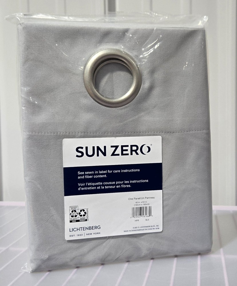 Single panel each order, 40" x 63" size Blackout style, grommet hang, 100% poly material Tag listed color is Gray; a lighter shade of gray Please message with any questions about measurements, material, etc New with the package