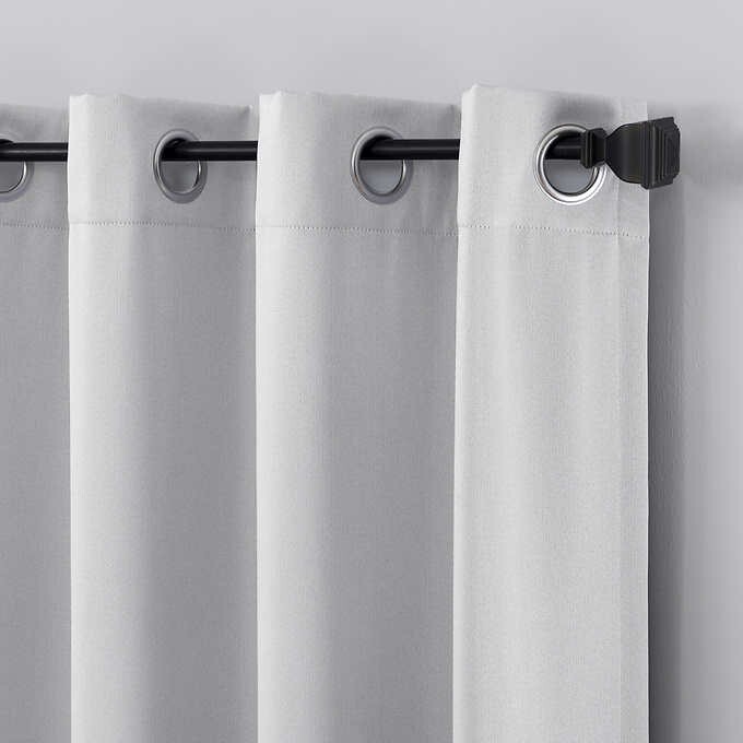 Features: Repels Dust, Lint, Hair, Pet Dander, Allergens, and Outdoor Irritants Includes 2 Blackout Curtain Panels with Built-in Metal Grommets Fits Curtain Rods Up to 1.5” in Diameter Up to 25% Outside Noise Reduction Blackout Technology Blocks Out Most Unwanted Light While Enhancing Privacy