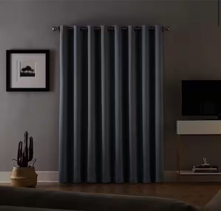 Sun Zero Oslo Home Theater Grade Extreme Blackout Grommet Curtain Panel provide the ultimate in light blocking technology to keep out even the harshest of light while bringing an elegant urban sophistication to any room of your home. Sun Zero Extreme Blackout technology is laboratory tested to block out 100% of light, reduce outside noise by up to 35%, and decrease energy lost through your windows by up to 50%. Comfort is optimized with thermal properties that help keep summer heat and winter chill out of your home. Hang in your entertainment room to eliminate screen glare and reduce distracting outside noise, or in your bedroom for enhanced privacy and a sounder, more uninterrupted sleep. Machine wash cold on gentle cycle. Use non-chlorine bleach when needed. Tumble dry on low heat, using a cool iron as needed. Extreme Blackout technology blocks out 100% of outside light Energy efficient design reduces energy lost through your windows by up to 50% Thermal properties help keep summer heat and winter chill out of your home Noise reduction by up to 35% helps you get a sounder, more uninterrupted sleep Includes 1 single grommet curtain panel made from machine washable material 100% polyester Product Information Internet # 304701944 Model # 52496 Store SKU # 1003061137 B40