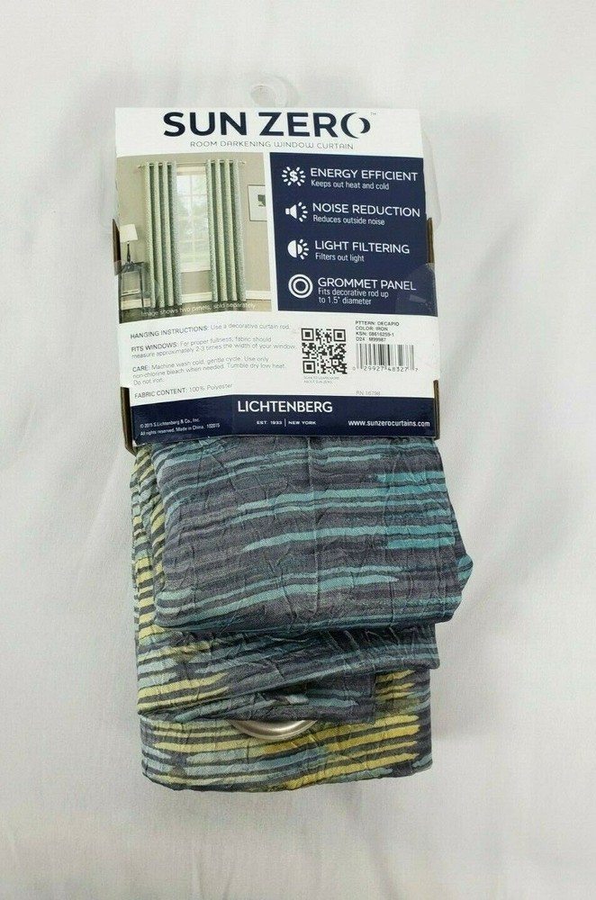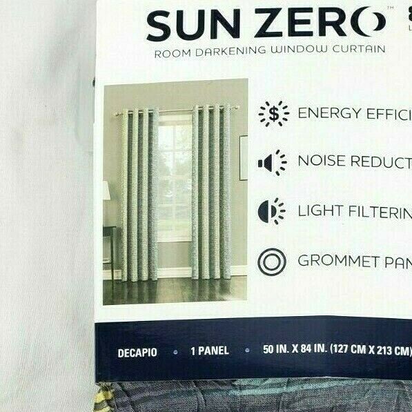 Sun Zero Iron Decapio Room-Darkening Crushed Grommet Curtain Panel. Energy efficient curtains that keeps out heat and cold, reduces outside noise, and filters out light. Machine washable. Material: 100% Polyester Dimensions: 50" in. W x 84" in. L s-b-14