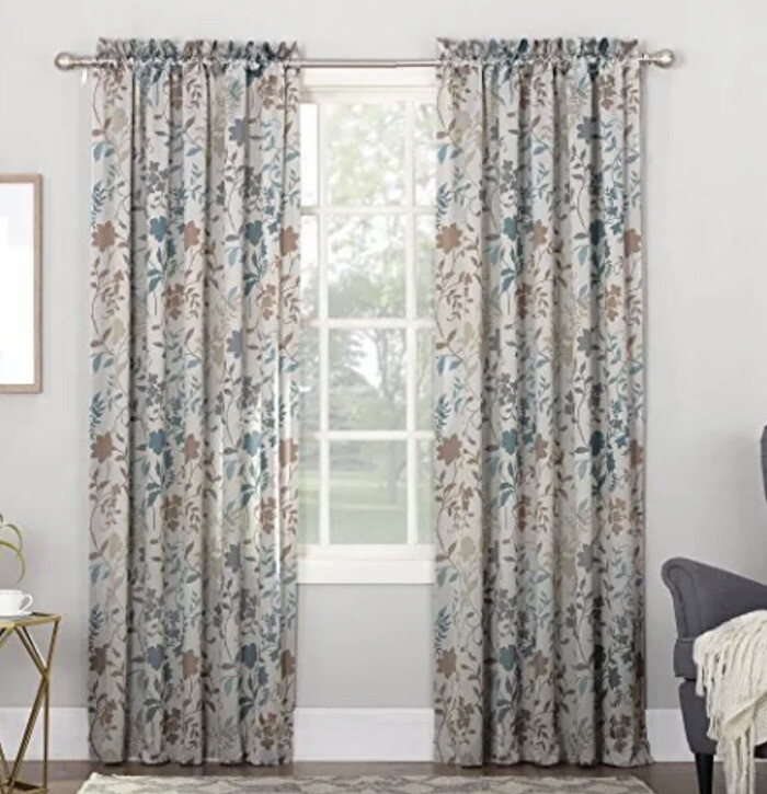 Sun Zero Kara Floral Print Energy Efficient Rod Pocket Curtain Panel 54" x 63.......