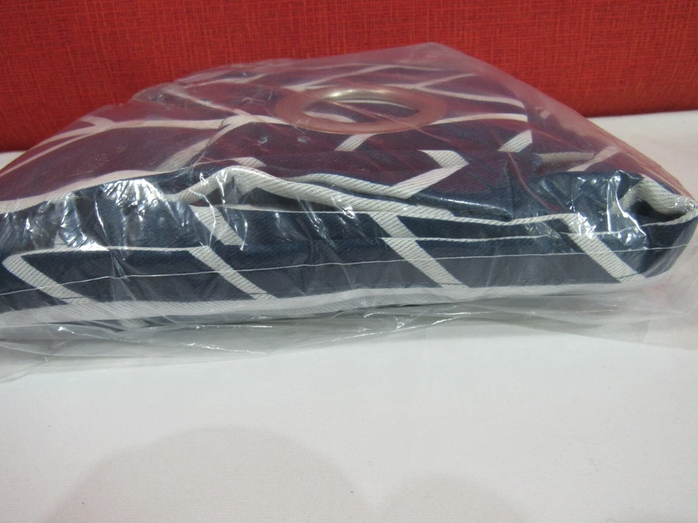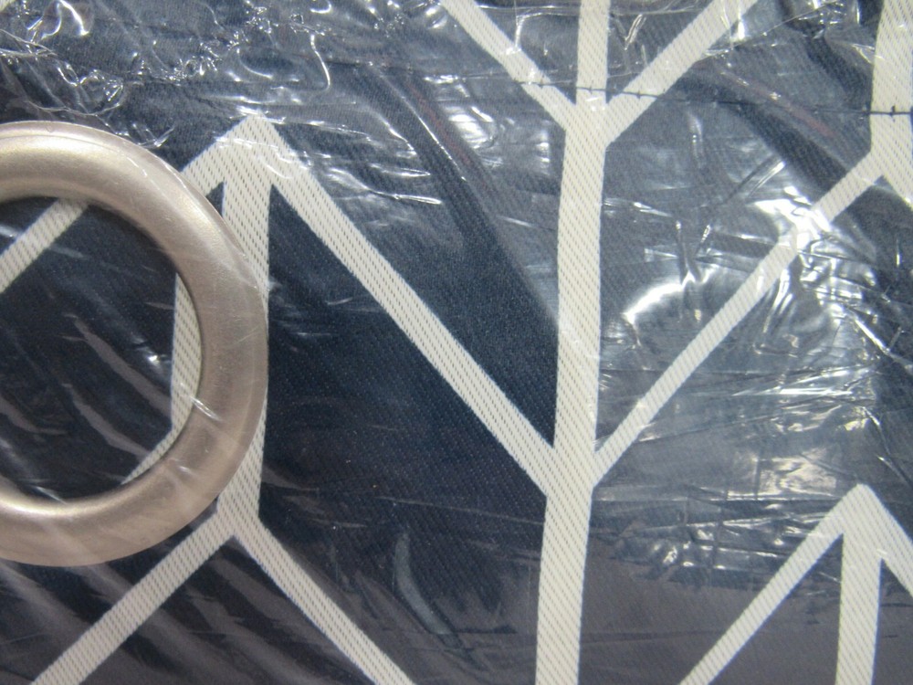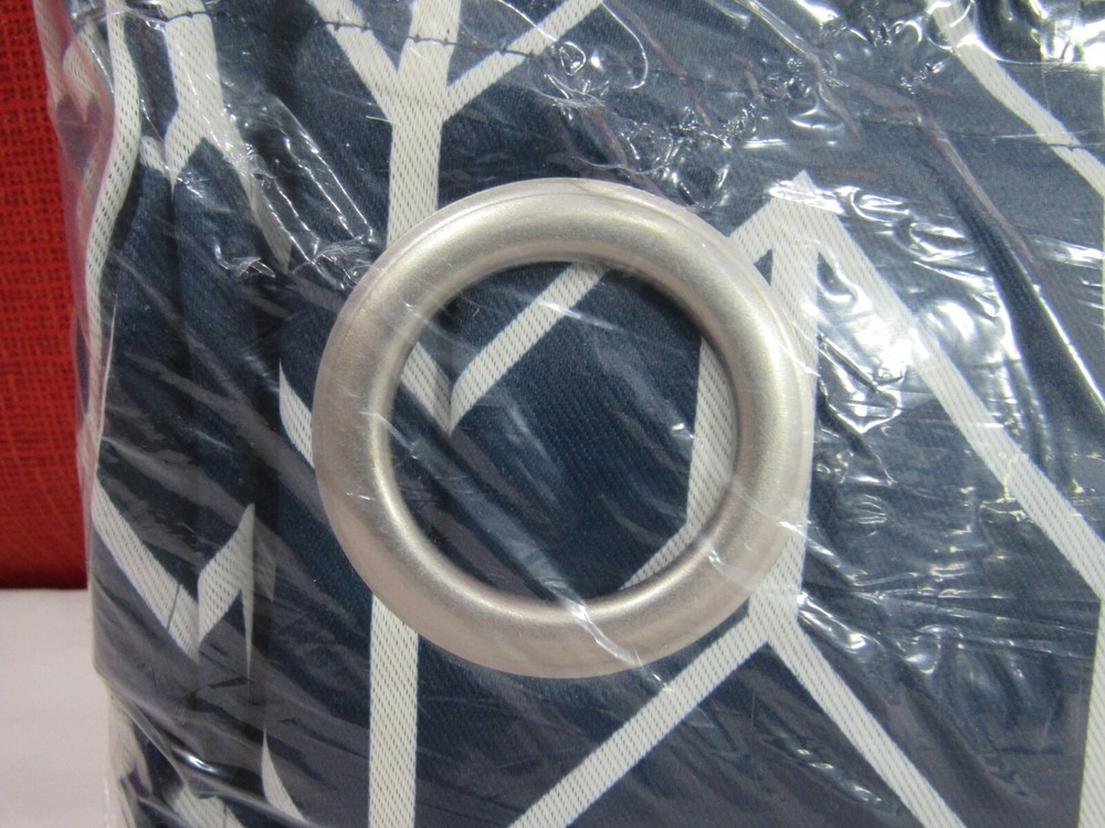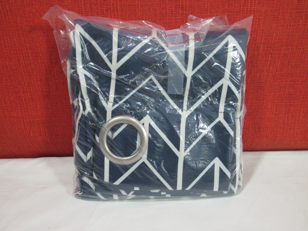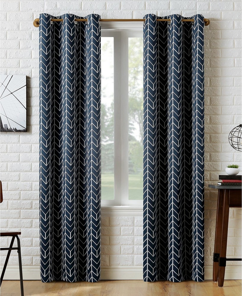 Sun Zero Kenwood 40" x 95" Chevron Print Blackout Curtain Panel-Navy T4102271 Featuring a contemporary repeating chevron design, the Sun Zero Kenwood Blackout Curtain Panels add classic elegance and modern sophistication into any living space. Sun Zero Blackout technology blocks out most outside light, offers outside noise reduction by up to 30%, and decreases energy lost through your windows by up to 40%. Hang in your living room for enhanced privacy, or in your bedroom for a sounder, more uninterrupted sleep. Dimensions: 40" x 95" Silver metal grommet top fits a standard curtain rod up to 1.5" for easy hanging Includes: 1 curtain panel Polyester Machine wash cold Imported