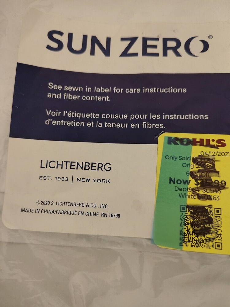 Sun Zero Lichtenberg 40"x 63" Blackout Thermal Insulated Grommet Top Panel. -NIP The blackout transparency ensures complete privacy while the grommets provide easy installation and maintenance. The panel is light/medium in weight and can be easily machine washed. Measuring 40" in width and 63" in length, this panel is perfect for any room in your home.