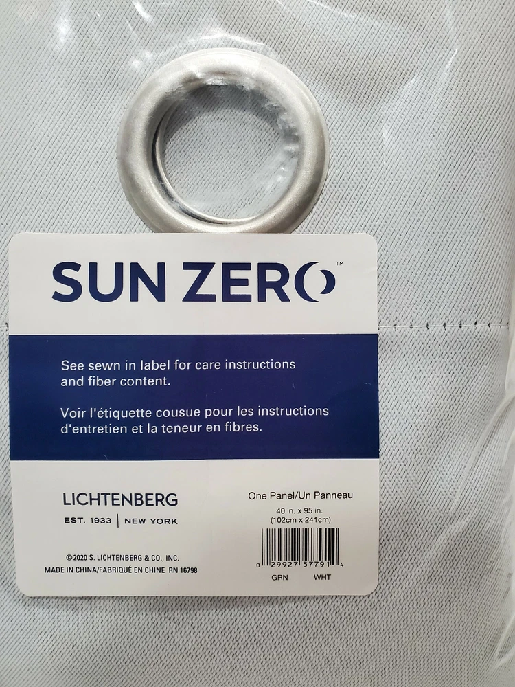 Sun Zero Lichtenberg 40"x95" curtain panel. You will receive ONE CURTAIN PANEL. White and gray options available. Item will ship via USPS Padded Flat Rate Envelope.