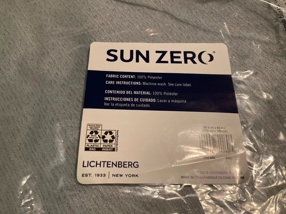Sun Zero Lichtenberg curtains. 2 panels, 80 inch wide x 95 inch long. Machine Washable. Grommet top. They are a light blue silver color. See pictures before ordering, Great for one nice larger window. I purchased to many. Very elegant and they keep the sun out if closed. Brand new in package.