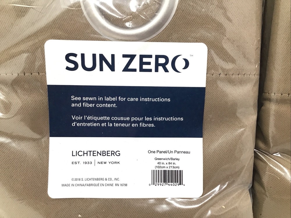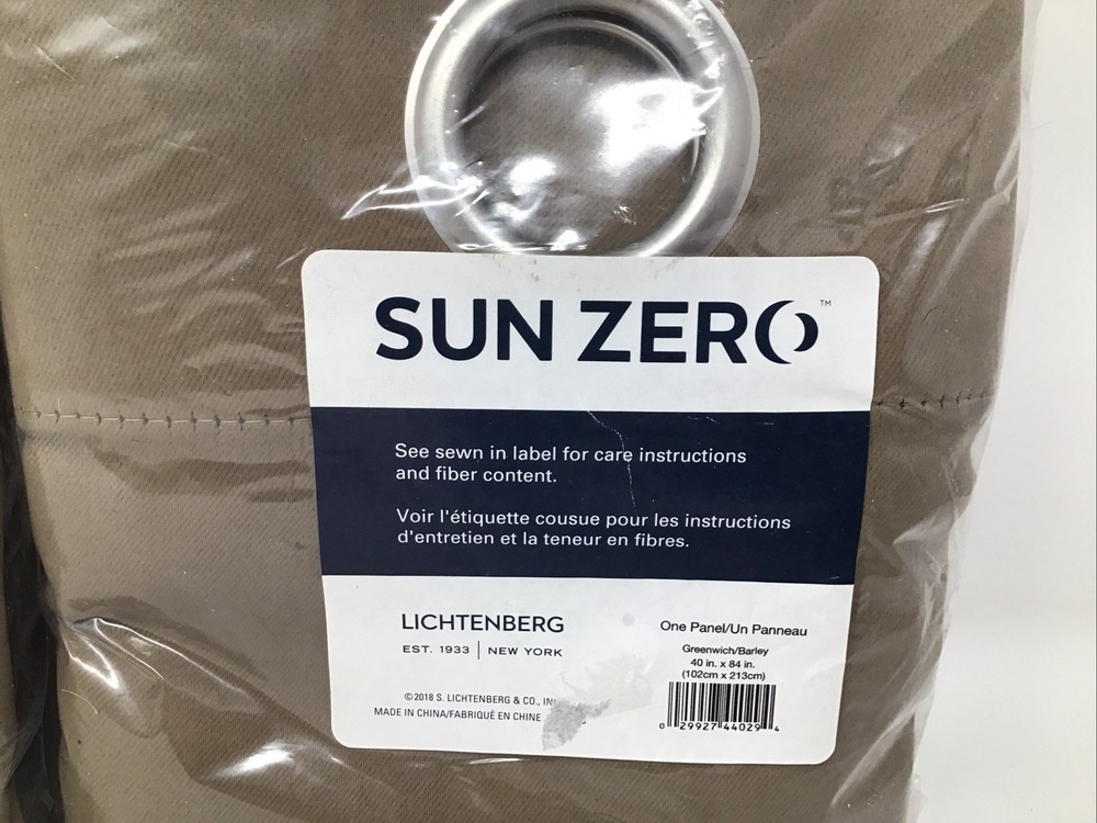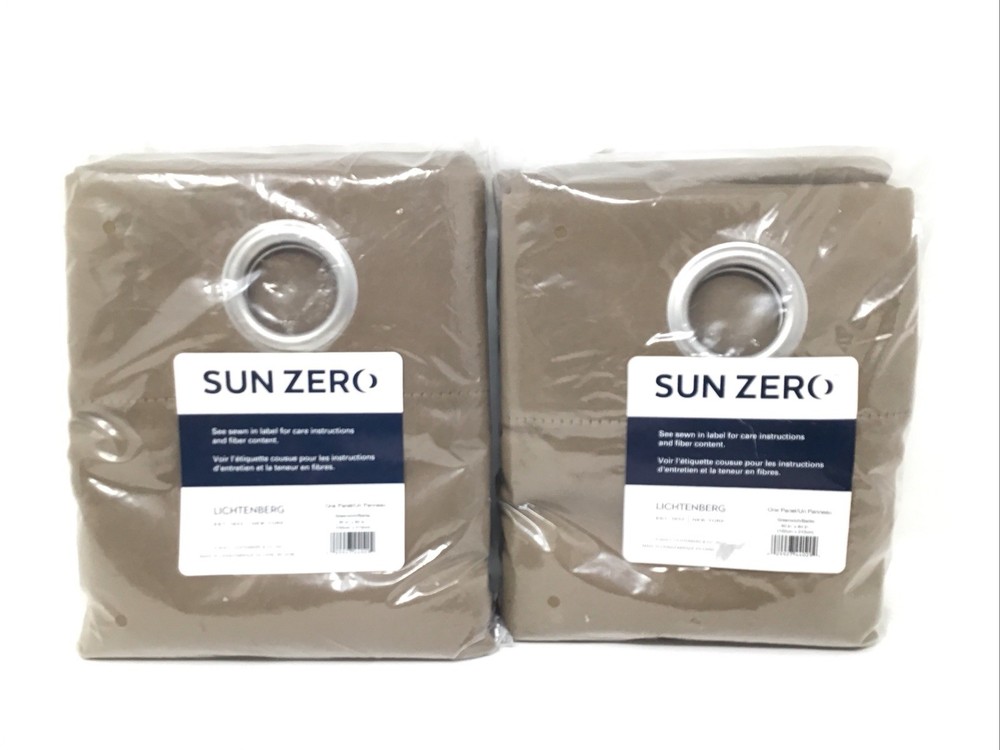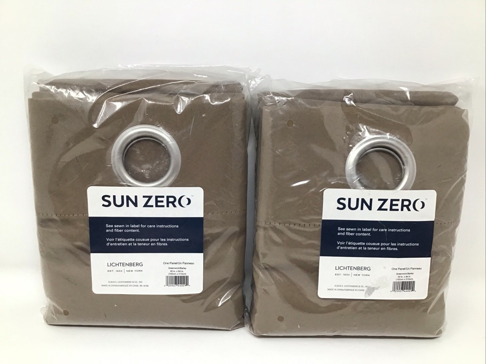 Sun Zero Lichtenberg Grommet Top Room Darkening Curtain 2 Packs 1 Panel Per Package Each Panel is 40" x 84". Both are new in package. The color says Greenwich/Barley or my opinion datk taupe. Please look at the pictures they tell the best story regarding condition and include measurements. We are happy to combine shipping. Please be sure to check out our other listings at Fantastical Thrifts, you never know what fantastical new thrifts await! Shipped via USPS Ground Advantage. Happy shopping and thanks so much for looking!