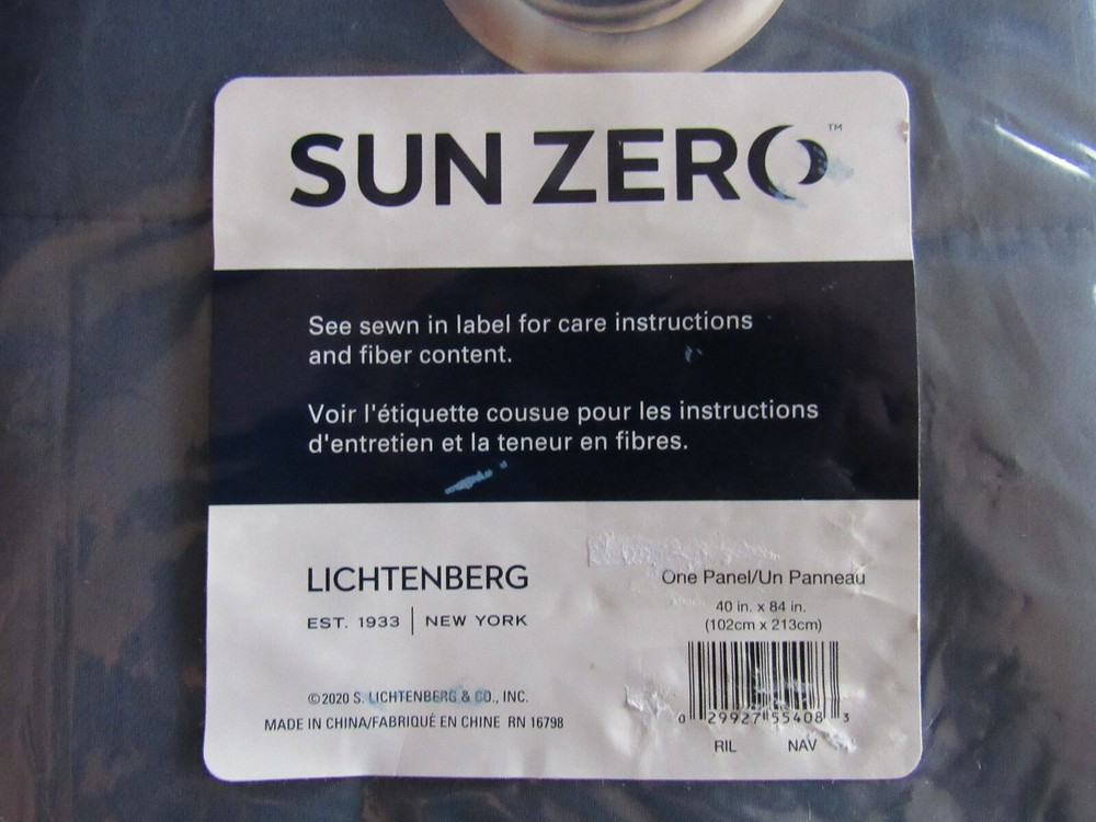 NEW Factory Packaging { Opened to get Pictures } π Sun Zero Lichtenberg Grommet Room Darkening Curtain 1-Panel 40" x 84" {Navy} 100% Polyester Imported π Room Darkening technology blocks out some unwanted light while enhancing privacy π Energy efficient design reduces energy lost through your windows by up to 25% π Thermal properties help keep summer heat and winter chill out of your home π Noise reduction up to 25% helps you get a sounder, more uninterrupted sleep π Built-in metal grommets fit curtain rods up to 1.5" in diameter π Each panel sold separately { Curtain Rod Not Included } π Double rod may be needed for layering. π Sold as One Panel π Energy Efficient / Light Filtering / Noise Reducing π Protects your Home from Outside Heat & Cold π Easy to Hang with a Standard or Decorative Curtain Rod π Easy to Clean - Machine Washable π Light block level: 2 - Ideal for blocking out some light. π Measure carefully before selecting your desired size and quantity. Sun Zero Curtain Panel in navy brings your room to life with a smooth, energy efficient fabric in bright colors. Layer with prints and solids to create your own look. Grommet top slides easily onto your curtain rod for easy styling. This panel reduces unwanted light for a more restful environment. Room darkening panels are made of materials that reduce light, and considerably darken the room. Some light will show through. These materials do not allow a view through and provide complete privacy. The darker the color the better the light reducing capabilities. 1.5 inch Grommet opening. Sold as individual panels measuring 40" width by 84" length. π π Fabric Care Instructions π Machine wash cold on gentle cycle. Use non-chlorine bleach when needed. Tumble dry on low heat, using a cool iron as needed. π Brand: Sun Zero Manufacturer: S. Lichtenberg Material: 100% Polyester Curtain Panel Style: Grommet Year Manufactured: 2020 π Gifting Note: Ships in the manufacturer's original packaging, which may reveal the contents. π Package Contains π 1x Sun Zero 1-Single Panel Grommet Curtain {In Original Packaging} π π To give you an ideal; My Mannequins' Measurements are Bust/Chest: 34" / Hips: 30" / Waist: 27" π Smoke Free Home π Other items and different styles in my Store π π¦ Note: 1. Due to the light and screen difference, the item's color may be slightly different from the pictures. 2. Please allow 2-4mm differences due to manual measurement . New Items are New! When possible maybe, taken out to get Pictures, Factory Packaging { Opened to get Pictures } Shipping We ship Your items out on or the next Business day of Post Office's hours; M-F (9am - Closing time 4:30pm, EST) Saturday (9am-11am, EST)