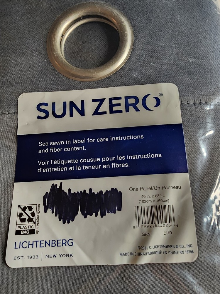 Sun Zero Lichtenberg One Panel 40 x 63 Grommet Charcoal Brand New