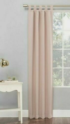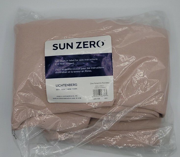Sun Zero Lichtenberg One Panel Curtain 40 in X 84 in Blush Color Number of Pieces: 1 in each bag Size: 40 inches wide by 80 inches long Material: Polyester Indoor/Outdoor: Indoor Hanging Type: Tab Top Light Filtration: Blackout Care & Cleaning: Machine Wash, Machine Dry, Iron as Needed FEATURES 1 panel 1.5-in. max rod diameter Energy efficient Room darkening panels are made of materials that reduce light, and darken the room Rod pocket Solid styling CONSTRUCTION & CARE Polyester Machine wash Imported Attention: each panel is sold separately. Image displays two panels. * Note : These are customer returns. One package has been opened and resealed using tap (see pics)
