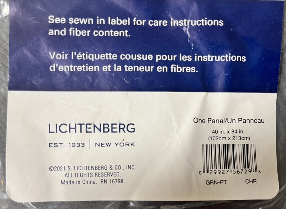 Sun Zero Lichtenberg Room-Darkening Rod Pocket Curtain Gray Panel Size 40 inches x 84 inches One Panel New in Package - Has been opened
