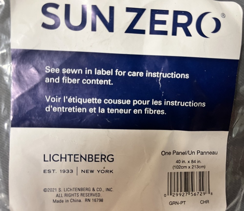 Sun Zero Lichtenberg Room-Darkening Rod Pocket Curtain Gray Panel Size 40 inches x 84 inches One Panel New in Package - Has been opened...