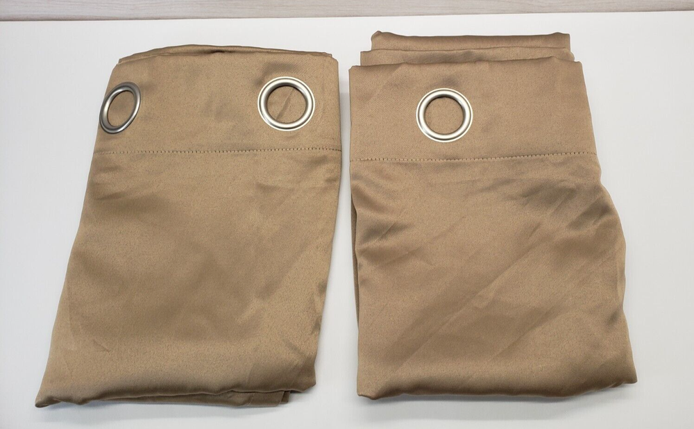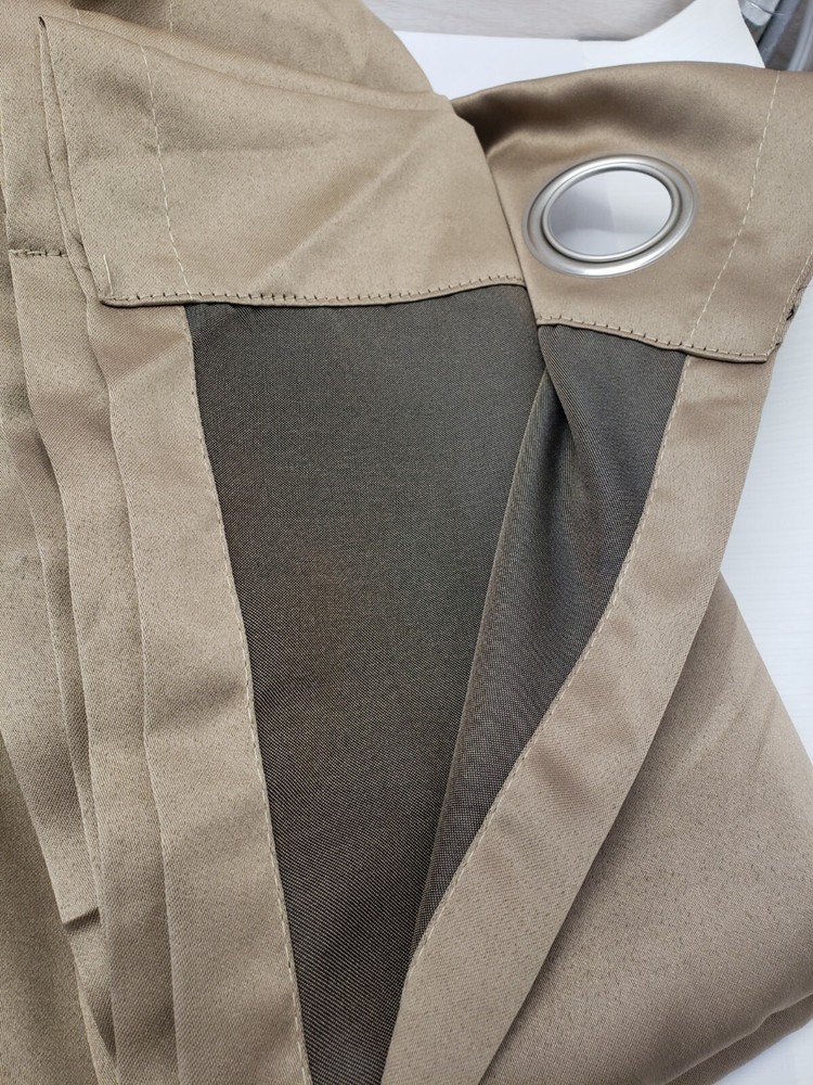 Sun Zero Madison Grommet Room Darkening Curtain Panel 54 X 108 Taupe - Pair Room Darkening technology blocks out some unwanted light while enhancing privacy Energy efficient design reduces energy lost through your windows by up to 25 percent Thermal properties help keep summer heat and winter chill out of your home Noise reduction up to 25 percent helps you get a sounder, more uninterrupted sleep Built-in metal grommets fit curtain rods up to 1.5" in diameter Each panel sold separately Curtain rod not included. Double rod may be needed for layering.
