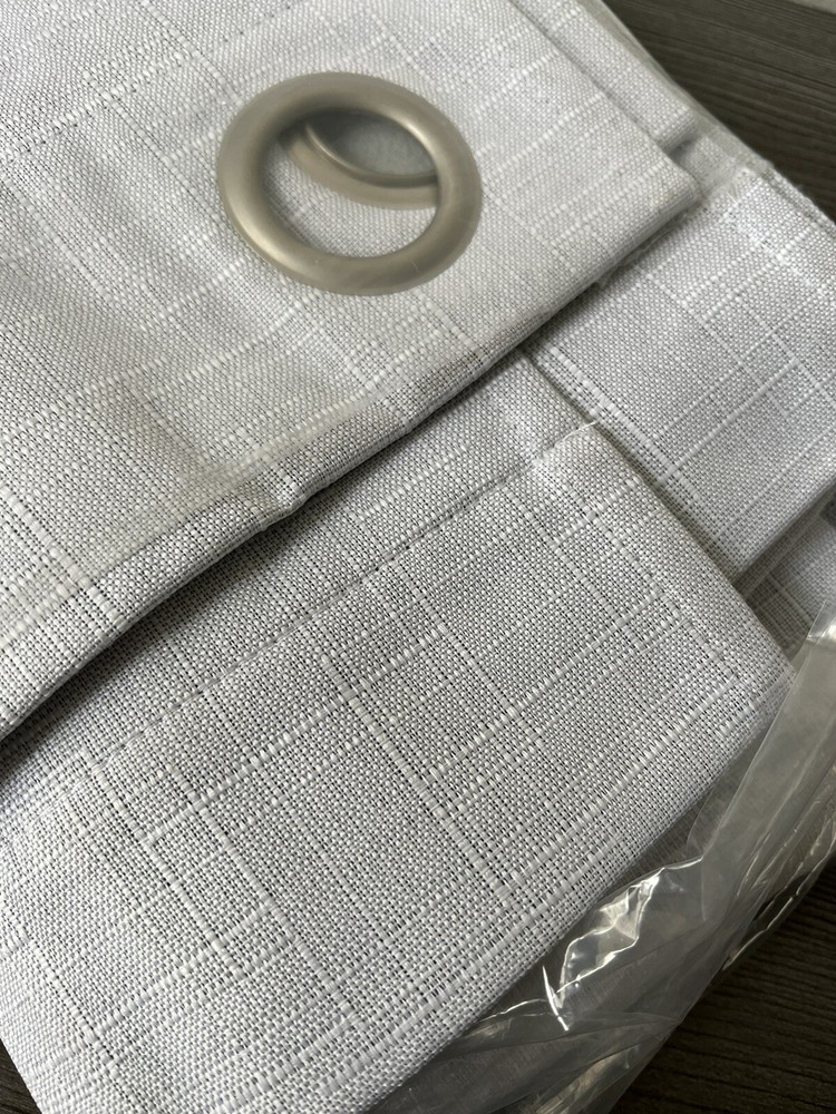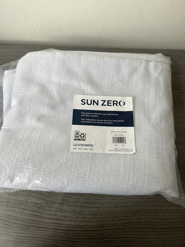 Sun Zero Miles Total Blackout 84-Inch Grommet Window Curtain Panel in White c3050 condition: open box, the item never used , please reference the pics, thanks! include: one panel Panel sold individually and measures 40" W Woven grid texture adds cozy vibes to your space Fleece insulation keeps air cool in summer and warm in winter Noise reduction by up to 55% for less distractions and better sleep Blackout technology blocks out 100% of outside light and eliminates screen glare Machine wash and dry Grommet top treatment Fits a rod up to 1.5" in diameter