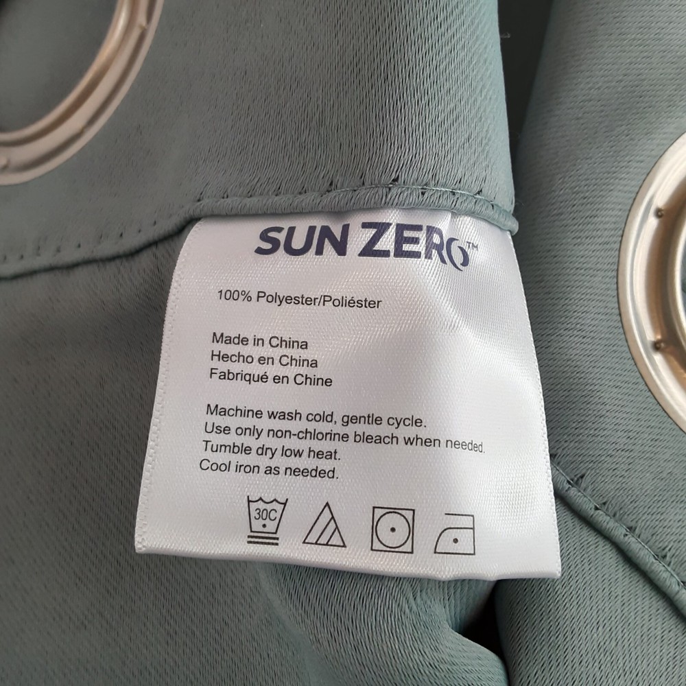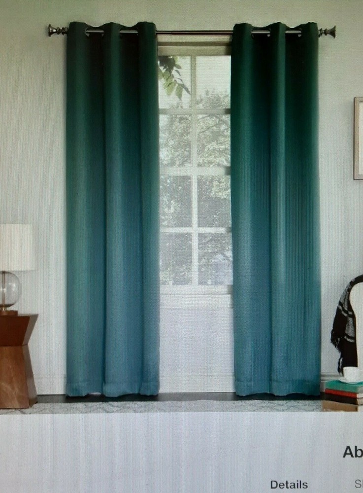 2 panels each 40 inches wide by 63 inches long. These panels have grommets for hanging. You may use up to a 1 1/2 inch curtain rod. Machine wash cold and tumble dry. Use blackout curtains to reduce light, heat and/or cold, and noise. This color is a teal called mineral. These curtains are only 63 inches long, so would not go to the floor as the picture depicts.